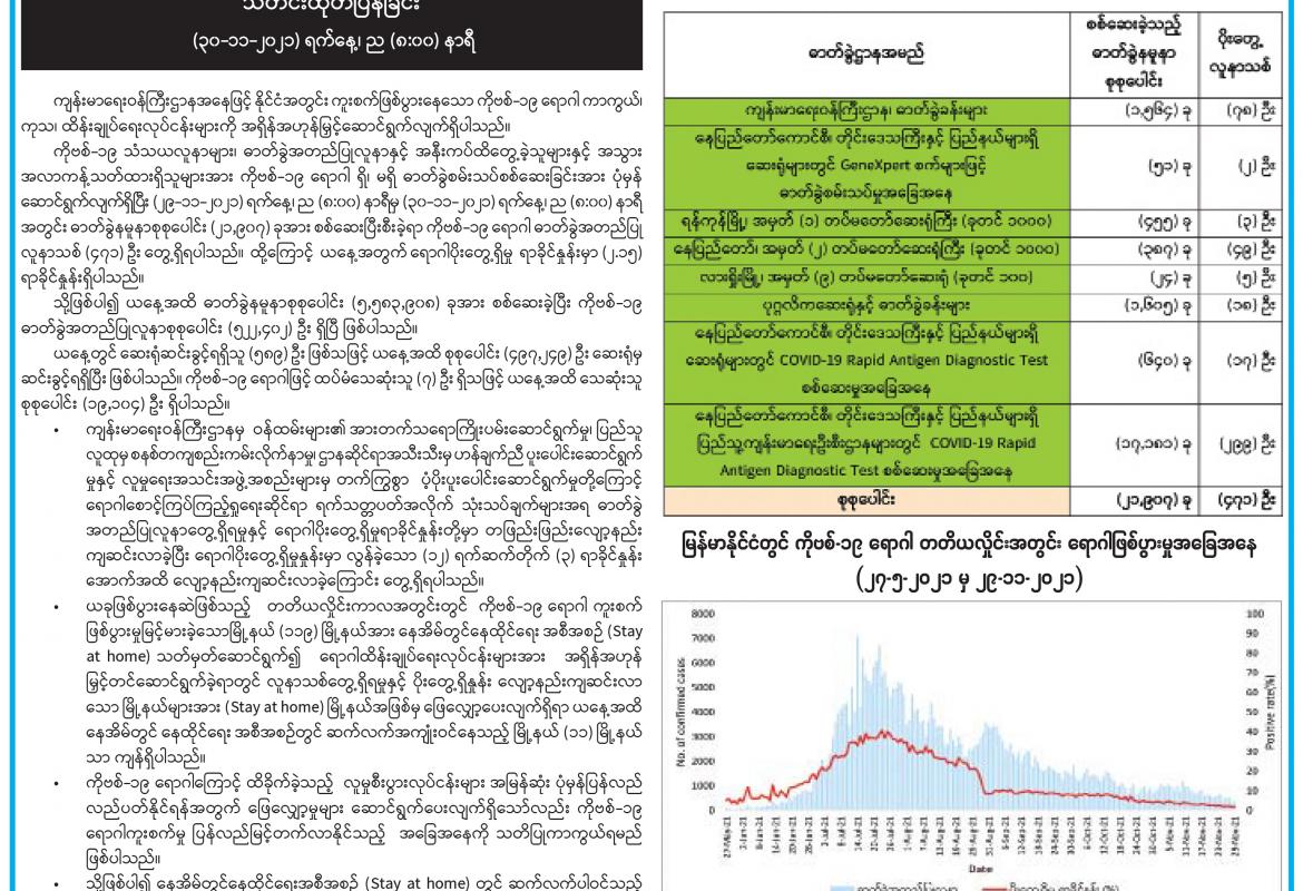 ကိုဗစ်-၁၉ ရောဂါ ဓာတ်ခွဲအတည်ပြုလူနာသစ် ၄၇၁ ဦးတွေ့ရှိ၊ ရောဂါပိုးတွေ့ရှိမှုရာခိုင်နှုန်းမှာ ၂ ဒသမ ၅ ရာခိုင်နှုန်းရှိ