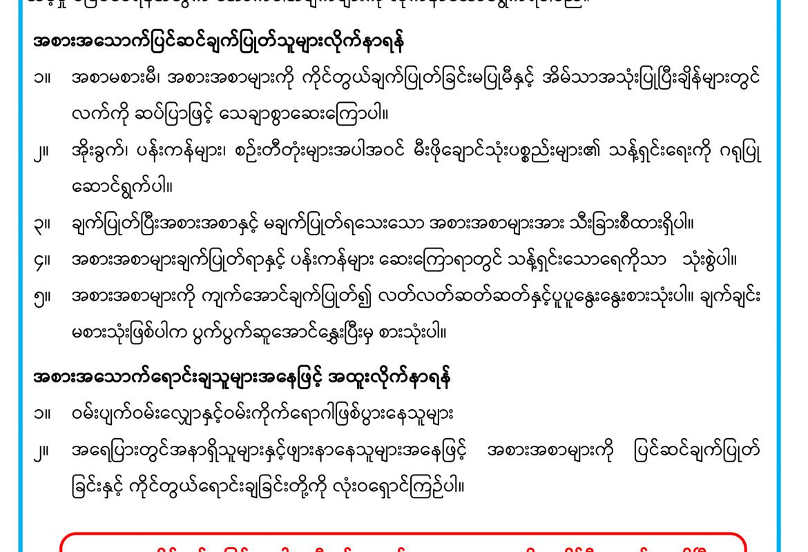 အစာအဆိပ်သင့်ဖြစ်ပွားမှုမှ ကြိုတင်ကာကွယ်ရေး ဆောင်ရွက်ရန်အချက်များ