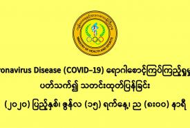 COVID-19 ရောဂါ ဓာတ်ခွဲအတည်ပြု လူနာသစ်မတွေ့ရှိ