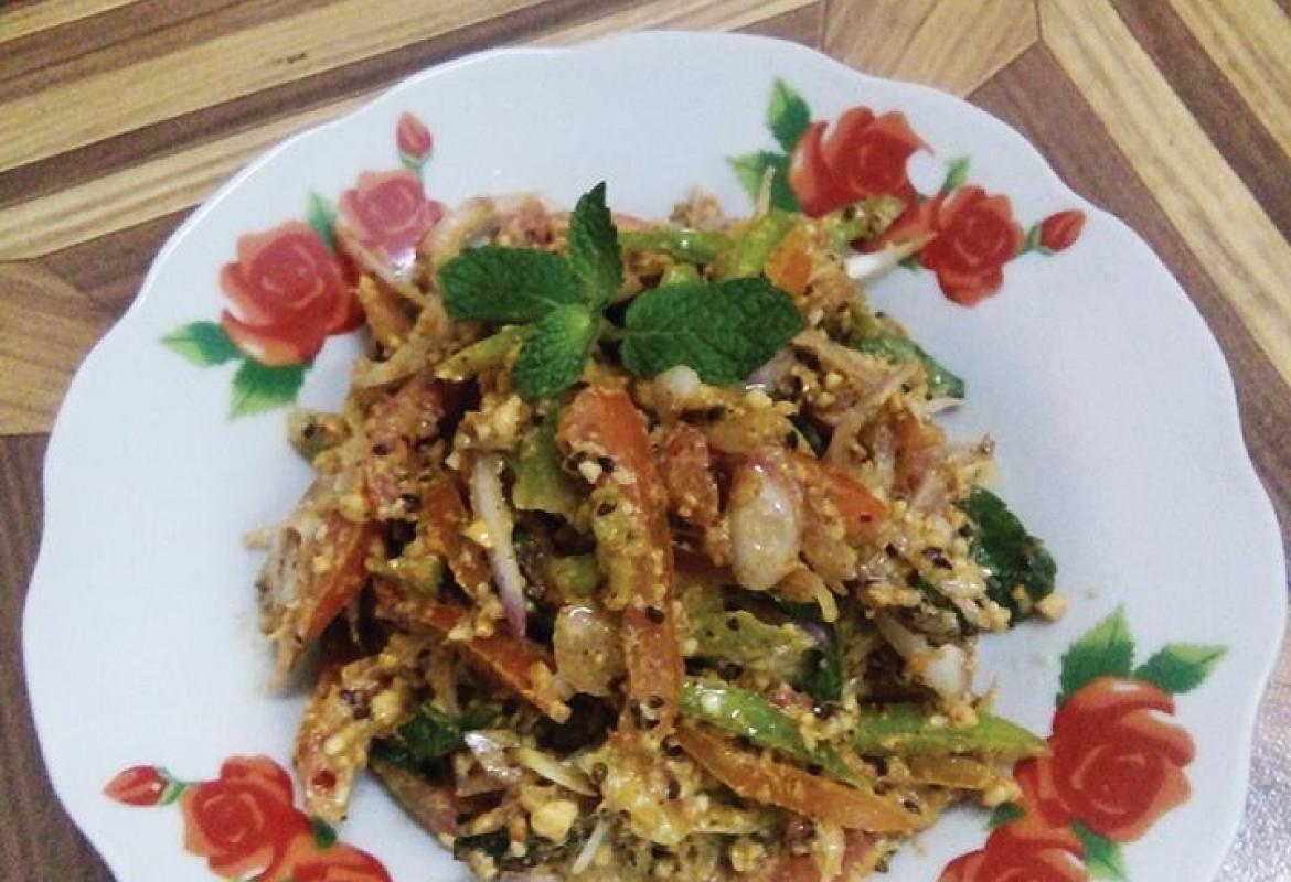 အင်းရိုးရာ မြေပဲနှမ်းထောင်း ခရမ်းချဉ်သီးအဆိမ့်သုပ်