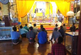 အင်းလေးဖောင်တော်ဦးမြတ်စွာဘုရား မူလစံကျောင်းတော်၌ ဒေသစာရီကြွချီပူဇော်ခံဌာနမှ ဒေသခံများ ဆွမ်း၊ ပန်း၊ ရေချမ်း၊ ရွှေသင်္ကန်းများ လာရောက်ကပ်လှူပူဇော်
