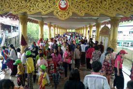 သင်္ကြန်အကြတ်နေ့၌ ကျိုက္ခမီရေလယ်ဘုရားတွင် ဘုရားဖူးနှင့် ကုသိုလ်ကောင်းမှုပြုသူများ အထူးများပြား
