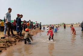 ရေကစားသူများဖြင့် အထူးစည်ကားလျက်ရှိသည့် မြဝတီမြို့ရှိ သောင်ရင်းအပန်းဖြေကမ်းခြေ