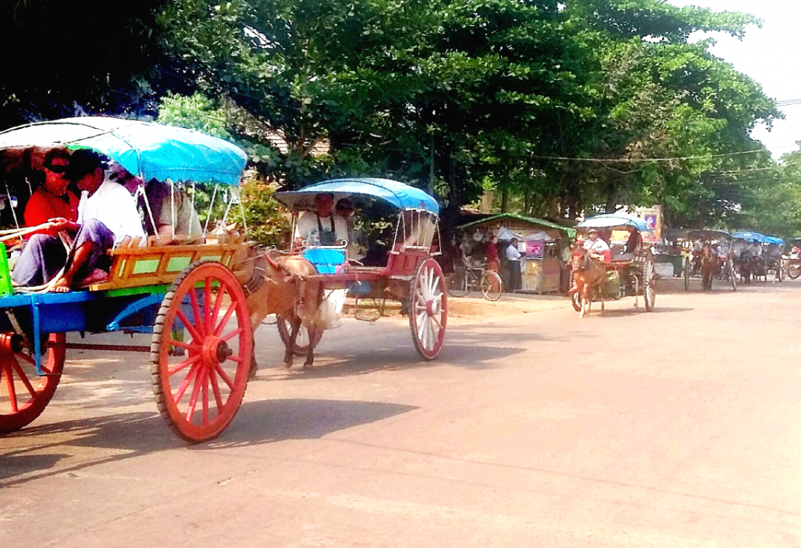 ကမ္ဘာလှည့်ခရီးသွားများ သန်လျင်မြို့သို့ မြင်းလှည်းများ ဆိုက်ကားများစီး၍ လှည့်လည်လေ့လာ