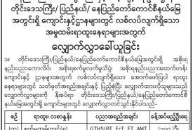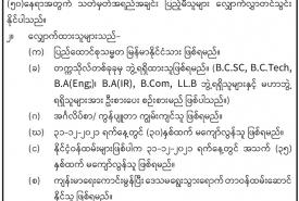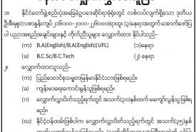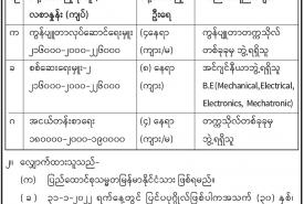 သိပ္ပံနှင့်နည်းပညာဝန်ကြီးဌာန နည်းပညာ၊ သက်မွေးပညာနှင့် လေ့ကျင့်ရေးဦးစီးဌာန တိုင်းဒေသကြီး/ ပြည်နယ်/ နေပြည်တော်ကောင်စီ နယ်မြေ အတွင်းရှိ ကျောင်းနှင့်ဌာနများတွင် လစ်လပ်လျက်ရှိသော အမှုထမ်းရာထူးနေရာများအတွက် လျှောက်လွှာခေါ်ယူ