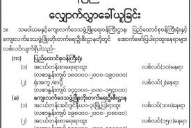 တိုင်းဒေသကြီး/ ပြည်နယ်၊ ပြည်ထောင်စုနယ်မြေ အတွင်းရှိ ရွေးကောက်ပွဲကော်မရှင် အဖွဲ့ခွဲရုံးများတွင် လစ်လပ်လျက်ရှိသော အငယ်တန်းစာရေး ရာထူးနေရာများအတွက် လျှောက်လွှာခေါ်ယူ