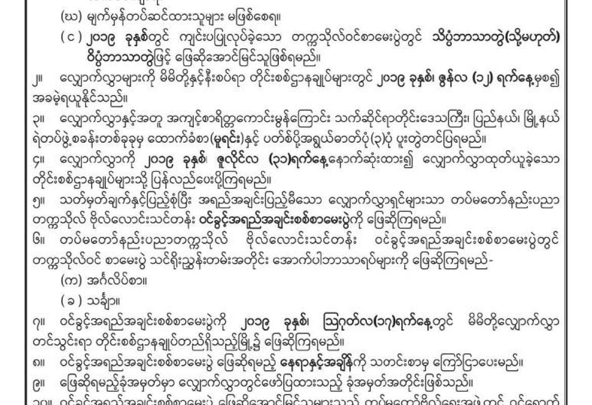 (လစာနှုန်းကျပ် ၂၁၆၀ဝ၀-၂၀ဝ၀-၂၂၆၀ဝ၀) ရာထူး (၂၁)နေရာအတွက် ဝန်ထမ်းလျှောက်လွှာခေါ်ယူခြင်း