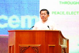 အပြည်ပြည်ဆိုင်ရာ အဂတိလိုက်စားမှုတိုက်ဖျက်ရေးနေ့ အထိမ်းအမှတ်အခမ်းအနားတွင် ပြည်ထောင်စုသမ္မတ မြန်မာနိုင်ငံတော် ယာယီသမ္မတ နိုင်ငံတော်လုံခြုံရေးနှင့် အေးချမ်းသာယာရေး ကော်မရှင်ဥက္ကဋ္ဌ ဗိုလ်ချုပ်မှူးကြီးမင်းအောင်လှိုင်ပြောကြားသည့် Video Message