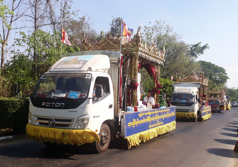 ထို့နောက် ပုသိမ်မြို့မှ ဟင်္သာတမြို့သို့ တိုင်းဒေသကြီးစည်ပင်သာယာရေးဝန်ကြီး ဦးကျော်မြင့်၊ တိုင်းဒေသကြီး၊ ခရိုင်၊ မြို့နယ်များမှ ဌာနဆိုင်ရာများ၊ ဘာသာရေးအသင်းအဖွဲ့များ၊ ဝတ်အသင်း အဖွဲ့များက ပင့်ဆောင်ပူဇော်သည်။