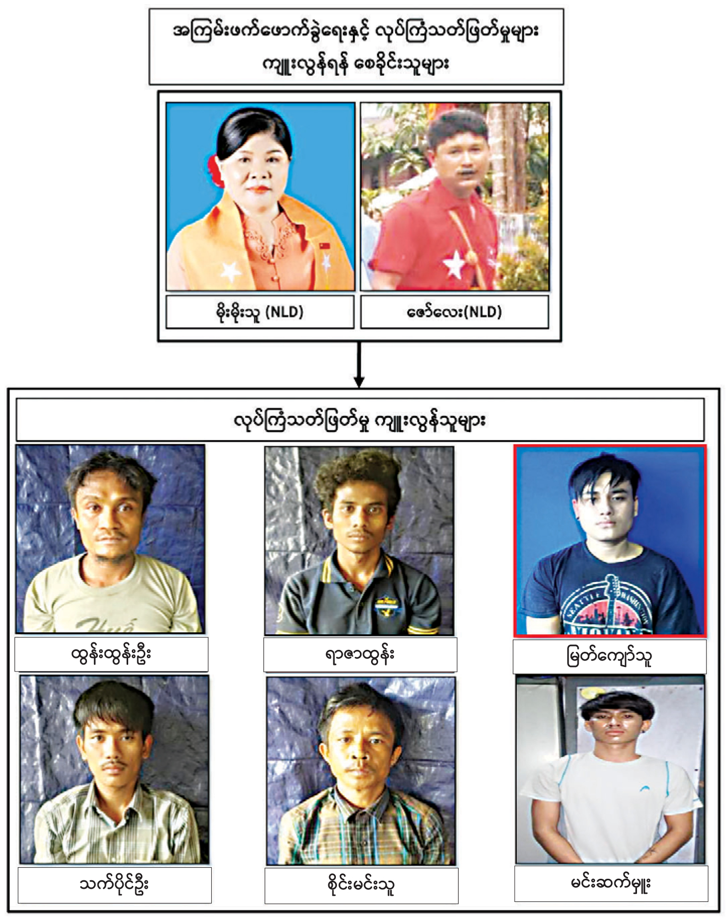 ထိုသို့ အပြစ်မဲ့ပြည်သူများနှင့် ဌာနဆိုင်ရာ ဝန်ထမ်းများကို လုပ်ကြံသတ်ဖြတ်ရန်နှင့် ဒေသတွင်း ဖောက်ခွဲရေးလုပ်ငန်းများ ဆောင်ရွက်ရန် အဓိကစီစဉ်ညွှန်ကြားသူမှာ NLD ပါတီမှ ထားဝယ်မြို့နယ် မဲဆန္ဒနယ်(၂) တိုင်းဒေသကြီး လွှတ်တော်ကိုယ်စားလှယ် ဟောင်းဖြစ်သူ မိုးမိုးသူ(ဖမ်းဆီးရန်ကျန်)နှင့် NLD ပါတီမှ ထားဝယ်မြို့နယ် အလုပ်အမှုဆောင်အဖွဲ့ဝင် ဇော်လေး (ဖမ်းဆီးရန်ကျန်) တို့ဖြစ်ကြောင်း ဖော်ထုတ်သိရှိရသည်။