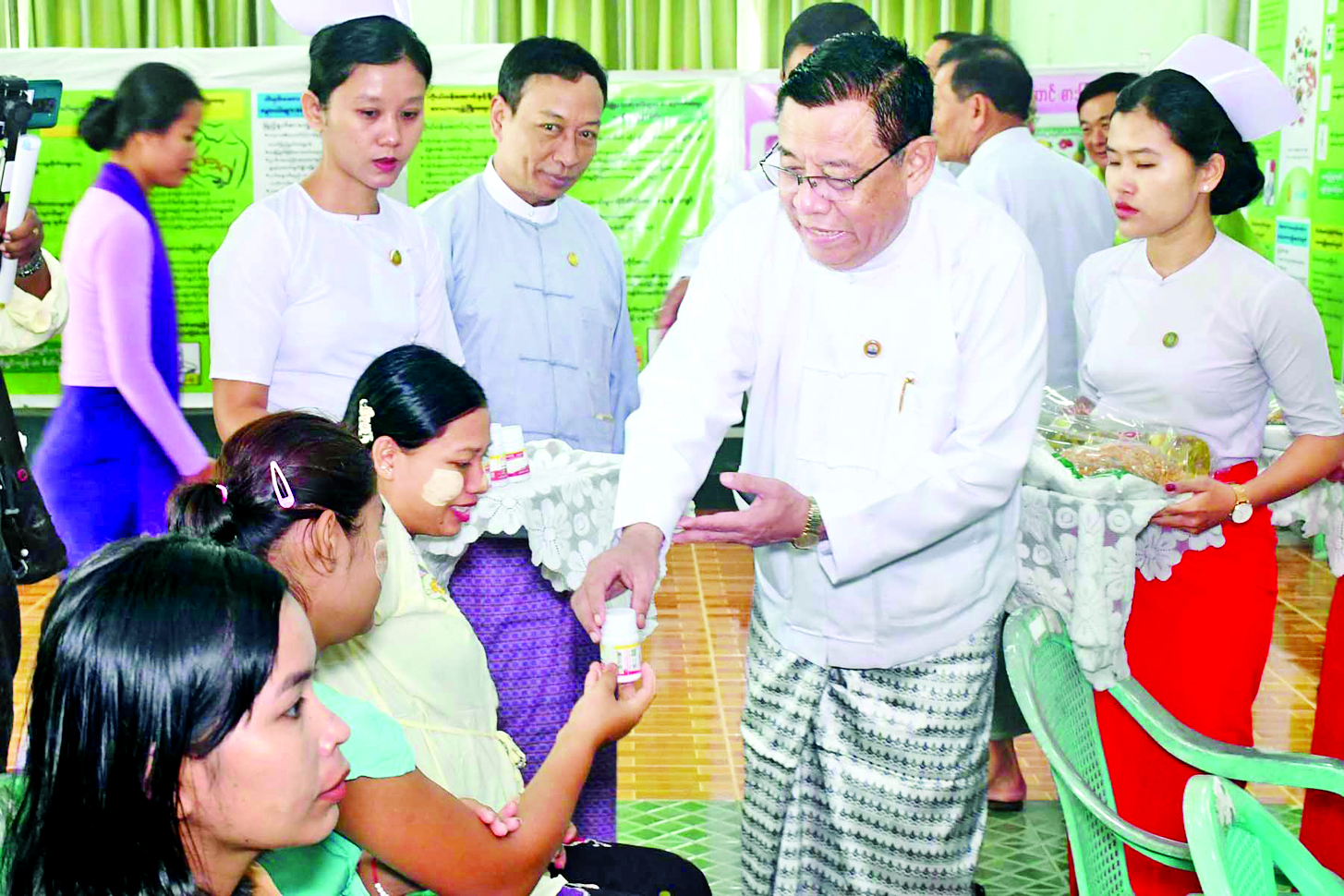 ယင်းနောက် တိုင်းဒေသကြီးဝန်ကြီးချုပ်နှင့် တိုင်းဒေသကြီးဝန်ကြီးများ၊ မိခင်နှင့်ကလေးစောင့်ရှောက်မှု ကြီးကြပ်ရေးအဖွဲ့၊ အမျိုးသမီးရေးရာ အဖွဲ့ များက အသက်ငါးနှစ်အောက်ကလေးများအား အင်အားပြည့် ဗီတာမင်အေဆေး တိုက်ကျွေးပြီး ကိုယ်ဝန်ဆောင်မိခင်များနှင့် နို့တိုက်မိခင်များအား အဏုအာဟာရဆေးများနှင့် လက်ဆောင်ပစ္စည်းများ ပေးအပ်ကာ ပြခန်းကို လှည့်လည်ကြည့်ရှုအားပေး ကြသည်။