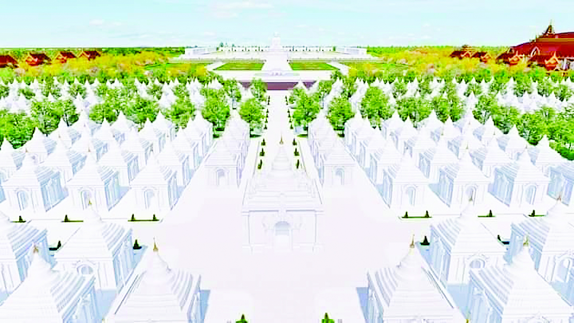 ဘုရားကြီးတည်ထားကိုးကွယ်ရေး ဆောင်ရွက်ရာတွင် နိုင်ငံ့ဂုဏ်ဆောင်၍ ခမ်းခမ်းနားနား ထင်ထင်ပေါ်ပေါ်ရှိစေရေးအတွက် မာရဝိဇယဗုဒ္ဓ ရုပ်ပွားတော်မြတ်နှင့်အတူ သံဃာတော်အပါး ၉၀၀ နှင့် လူပရိသတ် ၁၂၀၀ ဝင်ဆံ့နိုင်သည့် အလျား ၂၉၆ ပေ၊ အနံ ၂၁၃ ပေ၊ အမြင့် ၉၄ ပေရှိ သာသနာ့ဗိမာန် အဂ္ဂါဓိပတိဝိသုံဂါမသိမ်တော်ကြီး၊ ပိဋကသုံးပုံအား ပါဠိအက္ခရာ၊ Romanize Language တို့ဖြင့် ကျောက်ထက်အက္ခရာတင် ရေးထိုးထားသည့် ကျောက်စာတော်အပါအဝင် ဘုရား၊ ကျောင်း၊ ကန်၊ ဇရပ်များ ပြည့်စုံစွာ ထည့်သွင်းတည်ဆောက်ထားသော မာရဝိဇယဗုဒ္ဓဥယျာဉ်တော်ကြီးကိုလည်း တည်ဆောက်လျက်ရှိသည်။