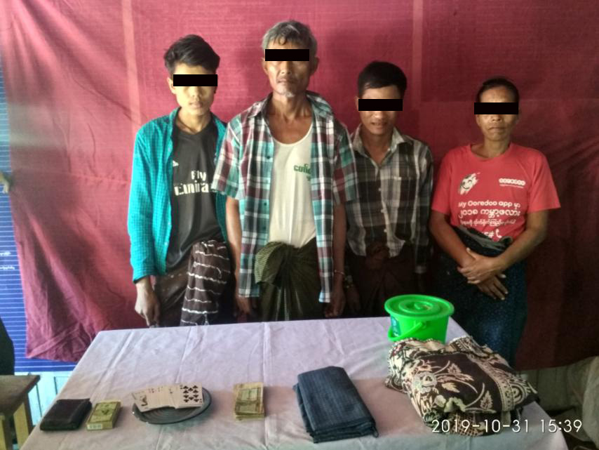 ဖြစ်စဉ်မှာ အောက်တိုဘာ ၃၁ ရက်နေ့ မွန်းလွဲ ၂ နာရီခွဲ အချိန်ခန့်တွင် ထီးချိုင့်မြို့မရဲစခန်းမှ ခေတ္တစခန်းမှူးရဲအုပ် အေးမင်းထွန်း ဦးစီးသောအဖွဲ့သည် တရားမဝင်ဖဲလောင်းကစားပြုလုပ်နေကြောင်း သတင်းအရ အခင်းဖြစ်နေရာဖြစ်သော ထီးချိုင့်မြို့၊အမှတ် ၃ ရပ်နေ ဒေါ်ဝင်းခိုင်နေအိမ်အား သက်သေများနှင့်အတူ ဝင်ရောက်ရှာဖွေရာ ၎င်းနေအိမ်တွင် ဒေါ်ဝင်းခိုင်နှင့်အတူ ထီးချိုင့်မြို့၊အမှတ် ၃ ရပ်နေ အောင်ကျော်မြင့်၊ ထီးချိုင့်မြို့နယ်၊ အလယ်တောကျေးရွာနေသိန်းသန်းဝင်းနှင့် ထီးချိုင့်မြို့နယ်၊ သခွပ်ချောင်ကျေးရွာနေ ကျော်စွာဝင်း(ခ)ဖိုးဇာတို့(၄)ဦးသည် ဖဲချပ် ၅၂ ချပ်ပါဖဲထုပ် ၁ ထုပ်၊ လောင်ကြေးငွေ ၅၆၀ဝဝ ကျပ်နှင့်အတူ ဖဲလောင်းကစားပြုလုပ်နေကြောင်း စစ်ဆေးတွေ့ရှိရသဖြင့် တရားမဝင်ဖဲလောင်းစားပြုလုပ်နေသူ ဒေါ်ဝင်းခိုင်ပါ ၄ ဦးအား ထီးချိုင့်မြို့မရဲစခန်းမှ ဥပဒေအရ ဖမ်းဆီးအရေးယူဆောင်ရွက်ထားကြောင်း သိရသည်။