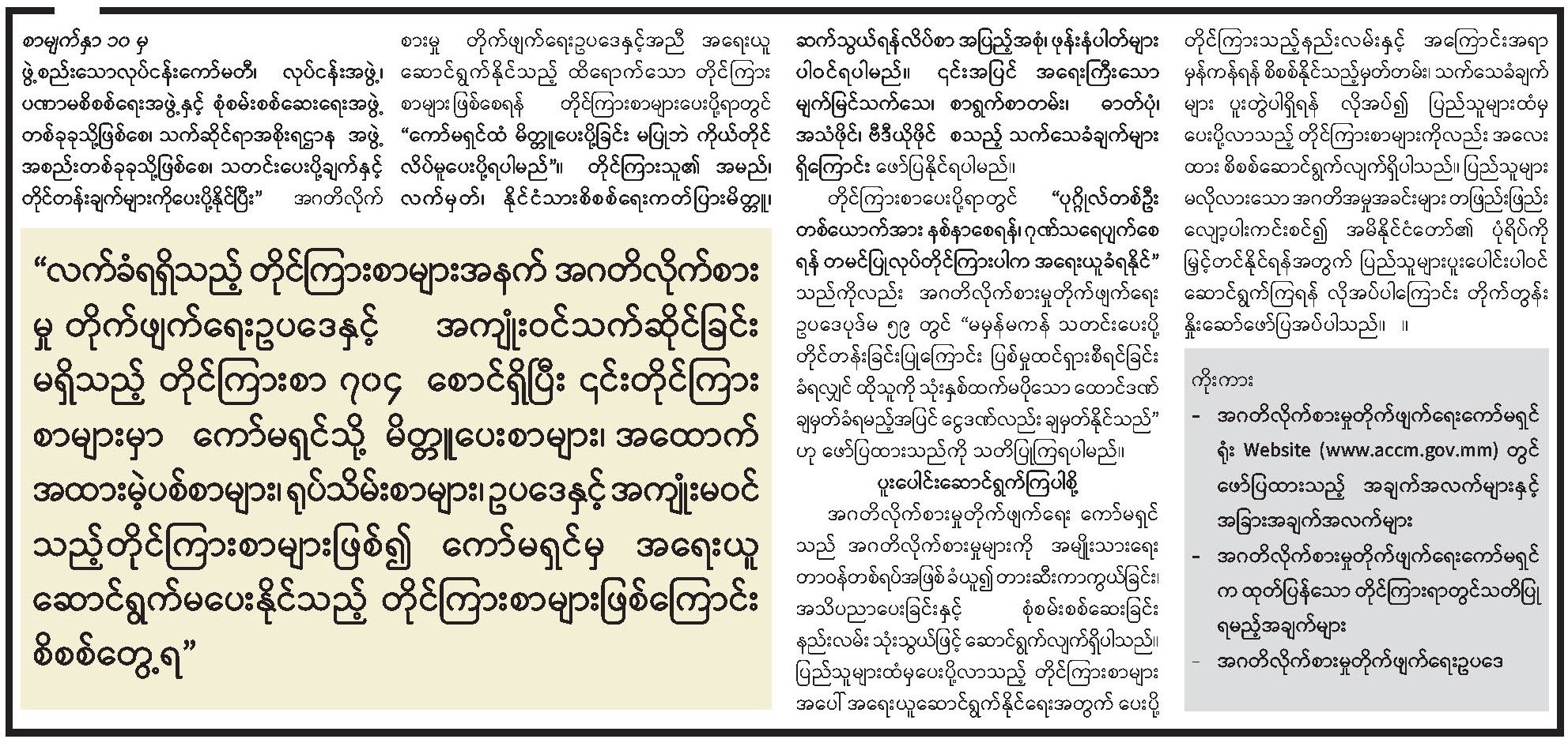 သတင်းဆောင်းပါးများ