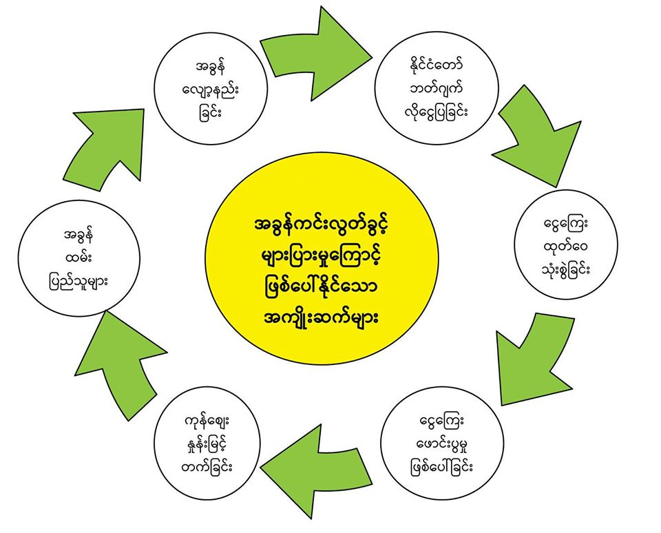 မိသားစုတစ်စုဘဝရပ်တည်နိုင်ရေးအတွက် အခြေခံ ကုန်ကျစရိတ်များဖြစ်သော စားဝတ်နေရေး စရိတ် သာမက လူမှုရေး၊ ပညာရေး၊ ကျန်းမာရေး စရိတ်များကို လည်း ကျခံသုံးစွဲရပါသည်။ ထိုအသုံးစရိတ်များအား ကျခံသုံးစွဲနိုင်ရန် မိသားစုအတွက် ပုံမှန်သုံးစွဲသည့် အသုံးစရိတ်နှင့် လိုက်ဖက်ညီသည့်ပုံမှန် ဝင်ငွေရှိရန် လိုအပ်ပါသည်။ အကယ်၍ ထိုမိသားစုအနေဖြင့် ပုံမှန် ဝင်ငွေမရှိခဲ့ပါက ကုန်ကျစရိတ်များအတွက် မည်သည့် နည်းလမ်းများဖြင့် ဖြေရှင်းလေ့ရှိကြပါသနည်း။ ပုံမှန်ကျင့်သုံး သည့်နည်းလမ်းများမှာ အသုံးစရိတ်ကို ချွေတာသုံးစွဲ ခြင်း၊ ရင်းနှီးသူများထံမှ အတိုးမဲ့ သို့မဟုတ် အတိုးဖြင့်ချေး ငှားခြင်း၊ မိသားစုပိုင်ပစ္စည်းအချို့ကိုထုခွဲရောင်းချခြင်း စသည့် နည်းလမ်းများဖြင့်သာ ဖြေရှင်းကြမည်ဖြစ်ပါသည်။