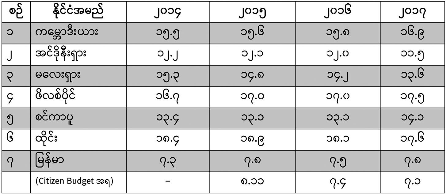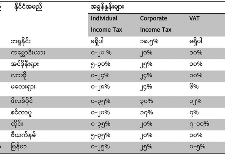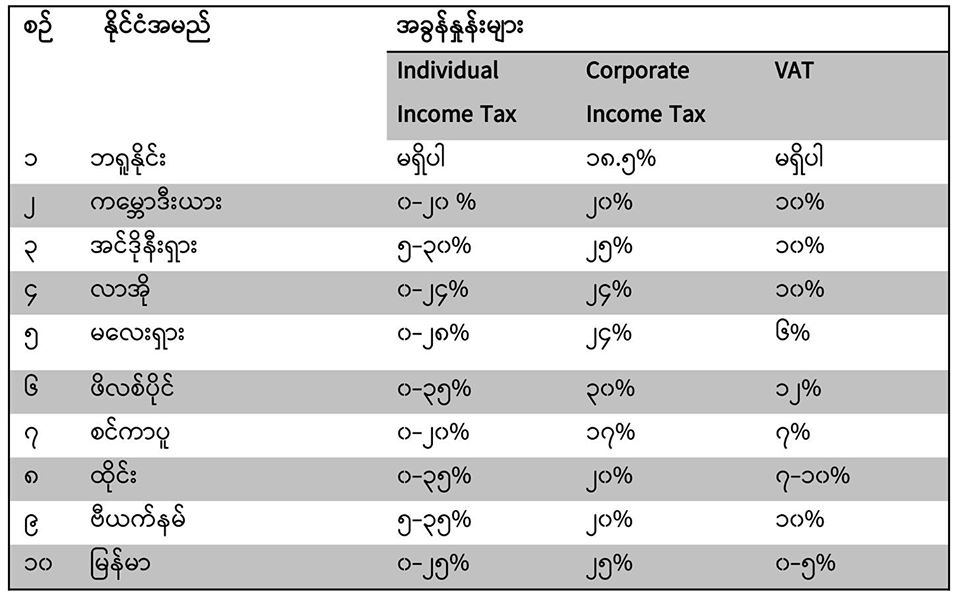 မြန်မာနိုင်ငံ၏အခွန်နှုန်းထားများကို အခြားအာဆီယံ နိုင်ငံ များနှင့် နှိုင်းယှဉ်ခြင်း