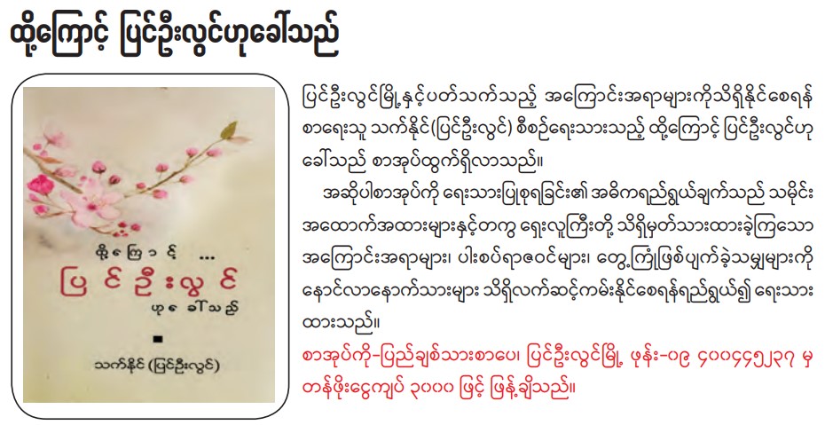 ထို့ကြောင့် ပြင်ဦးလွင်ဟုခေါ်သည် စာအုပ်ထွက်ရှိ