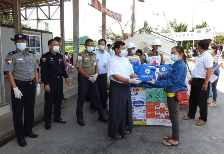 လွှဲပြောင်းပေးလာသော အမျိုးသမီးများကို မြန်မာနိုင်ငံကြက်ခြေနီအသင်း မိသားစုပြန်လည်ဆက်သွယ်ပေးရေးဌာနမှ ပစ္စည်း ၁၁ မျိုးပါ အမျိုးသမီးအသုံးအဆောင်ပစ္စည်းများကို တာဝန်ရှိသူများမှ ထောက်ပံ့ပေးအပ်ခဲ့ကြောင်း သိရှိရသည်။