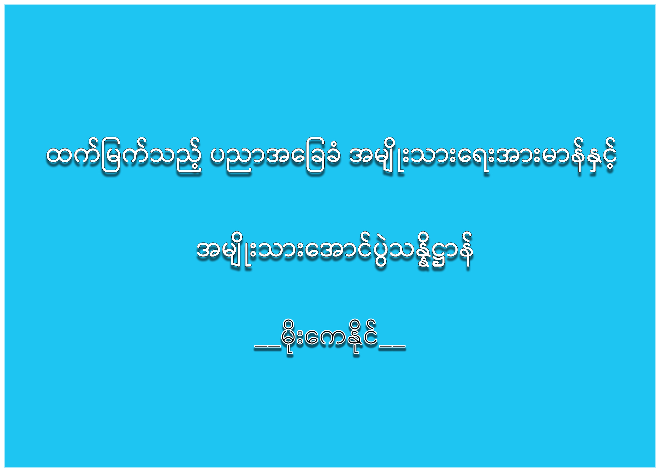 ပညာကိုပညာတစ်ခုတည်းမထား၊ မူလပညာ အခြေခံနဲ့အတွေ့အကြုံကို ပေါင်းစပ်လိုက်တဲ့အခါမှ သာလျှင် အတွေးအခေါ်၊ ဗဟုသုတရှိရှိ၊ အမြော်အမြင် ကောင်းကောင်းနဲ့ အသိပညာပြည့်ဝတဲ့ ခေါင်းဆောင် ကောင်းတွေ ရရှိလာခဲ့တာဖြစ်ပါတယ်။ တိုင်းပြည်မှာ ဒီမိုကရေစီအရေးပြောမလား၊ ဖက်ဒရယ် လမ်းကြောင်းပဲသွားမလား ဘယ်အရေး ဘယ်ကဏ္ဍမှာမဆို ချုပ်လိုက်ရင် အဓိက အချက်ဖြစ်တဲ့ “ပြည်ထောင်စုငြိမ်းချမ်းရေးမှသည် နိုင်ငံတော်ဖွံ့ဖြိုး တိုးတက်ရေး” ဆိုသည့် လမ်းကြောင်းမှာ ပညာရေး ကဏ္ဍဟာ မည်မျှအရေးပါကြောင်း အသိအမှတ်ပြု ရမှာ ဖြစ်ပါတယ်။