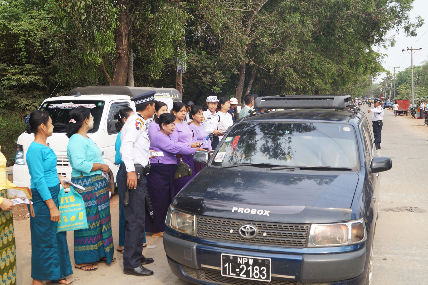 ပဉ္စမအကြိမ်မြောက် ကမ္ဘာ့ယာဉ်အန္တရာယ်၊ လမ်းအန္တရာယ် ကင်းရှင်းရေး ရက်သတ္တပတ်လှုပ်ရှားမှု အနေဖြင့် ရန်ကုန်မြောက်ပိုင်းခရိုင်၊ ထန်းတပင်မြို့နယ်တွင် ယာဉ်စည်းကမ်း၊ လမ်းစည်းကမ်းဆိုင်ရာများ အသိပညာပေးခြင်းလုပ်ငန်းကို ယနေ့ နံနက် ၈ နာရီက လူသွားလူလာများပြားသည့် ထန်းတပင်ကားဂိတ်လမ်းဆုံ၌ ဆောင်ရွက်ခဲ့ကြသည်။