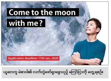 ပထမဆုံးဖော်ပြလိုတဲ့အကြောင်းအရာကတော့ ဂျပန်ဘီလျံနာတစ်ဦး ဟာ အာကာသအတွင်းကို သူနဲ့အတူသွားဖို့ လက်တွဲဖော်ရှာနေတယ်ဆိုတဲ့ အကြောင်းအရာပါပဲ။ ဒီအကြောင်းအရာကတော့စိတ်ကူးယဉ်သိပ္ပံဇာတ်ကား တွေထဲကအတိုင်းပါပဲ။ ဂျပန်ဘီလျံနာတစ်ဦးဖြစ်တဲ့ ယူဆာကူ မဲဇာဝါကတော့ အာကာသခရီးရှည်မှာသူနဲ့အတူလိုက်ပါမယ့် အထူးပုဂ္ဂိုလ်တစ်ယောက်ကို ရှာဖွေနေပါတယ်။ သူဟာမကြာသေးခင်ကမှ သူ့ရဲ့ချစ်သူနဲ့လမ်းခွဲထား တာလည်းဖြစ်ပါတယ်။ အာကာသကိုသူနဲ့အတူ သွားဖို့အမျိုးသမီး လက်တွဲဖော်ကို ရှာနေကြောင်းအွန်လိုင်းကနေတစ်ဆင့် အသိပေးခဲ့ပါတယ်။ အာကာသ အတွင်း သွားမယ့်ခရီးစဉ်ကိုတော့ ၂၀၂၃ ခုနှစ်မှာ အစီအစဉ်ဆွဲထားပါတယ်။ အထီးကျန်ဆန်ပြီး ဘာမျှမရှိသလို ခံစားနေရတဲ့ခံစားချက်ကနေ သက်သာရာရဖို့အတွက် အမျိုးသမီးလက်တွဲဖော်ရှာဖို့ကြိုးစားနေတာပါ။ ဘဝတစ်သက်တာ လက်တွဲဖော်ကို ရှာနေတာလည်းဖြစ်တယ်လို့ အသက် ၄၄ နှစ်အရွယ် ယူဆာ ကူမဲဇာဝါက ပြောပါတယ်။ သူဟာ ZoZOuown ဆိုတဲ့ အွန်လိုင်းရှော့ပင်းထောင်ထားပြီး ဂျပန်မှာတော့နာမည်ကြီးပါပဲ။ သူ့ရဲ့ကြွယ်ဝချမ်းသာမှုကတော့ နှစ်ဘီလီယံရှိတယ်လို့ ဖော့ဘ်မဂ္ဂဇင်းရဲ့ ဖော်ပြချက်အရ သိရပါတယ်။ သူ့ရဲ့ဘဝ လက်တွဲဖော်အဖြစ် လျှောက်ထားမယ့်အမျိုးသမီးကတော့ အသက် ၂၀ အရွယ် လူလွတ်အမျိုးသမီး ဖြစ်ရပါမယ်။ နောက်ပြီး ကိုယ်ရည်ကိုယ်သွေးကောင်းမွန်ရမှာဖြစ်ပြီး အာကာသအကြောင်းကို စိတ်ဝင်စားသူလည်း ဖြစ်ရပါမယ်။ လျှောက်လွှာနောက်ဆုံးရက်ကတော့ ဇန်နဝါရီ ၁၇ ရက်ဖြစ်ပြီး မတ်လအတွင်းမှာ အပြီးသတ်ရွေးချယ်သွားမယ်လို့ သိရပါတယ်။