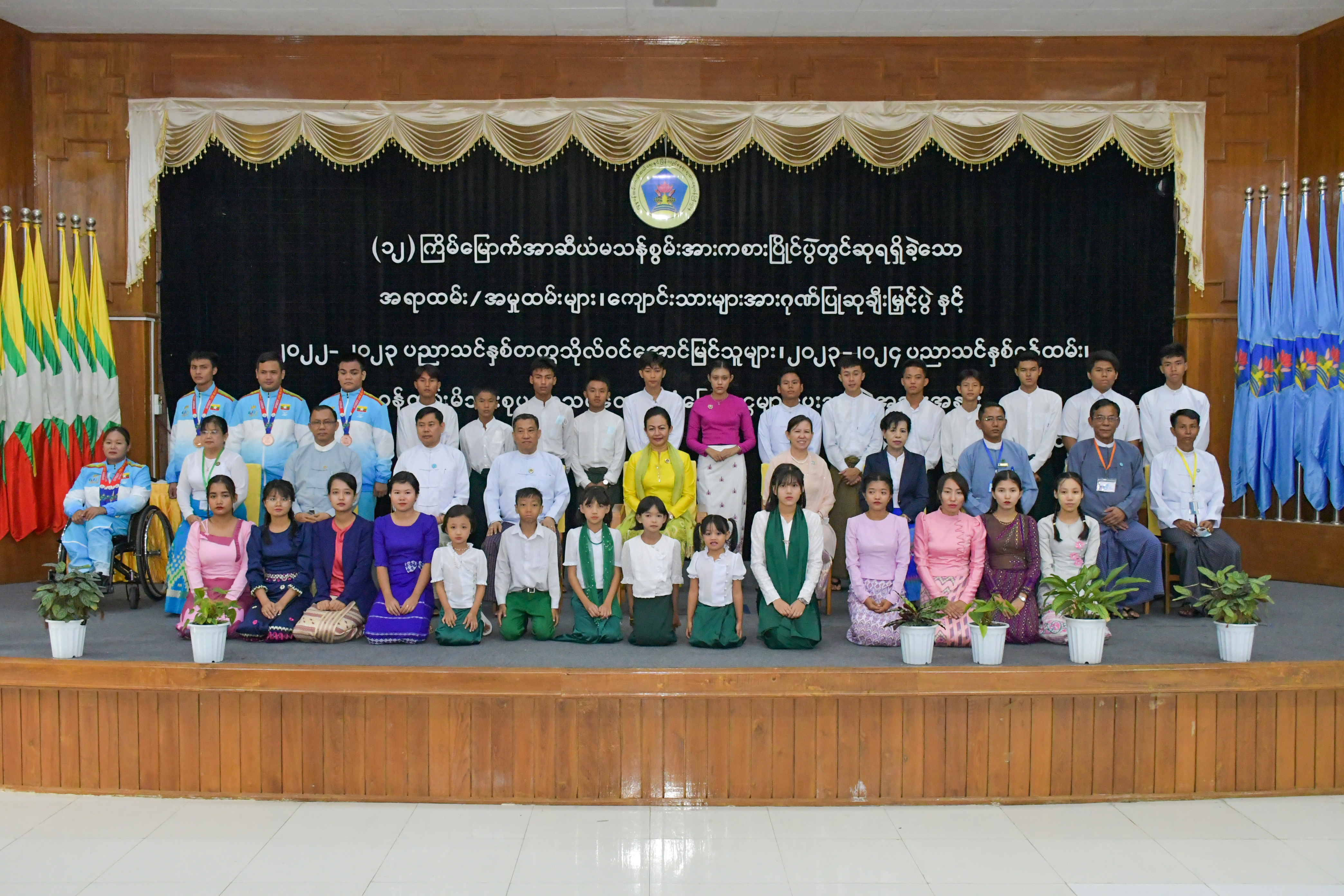 (၁၂)ကြိမ်မြောက် အာဆီယံ မသန်စွမ်း အားကစားပြိုင်ပွဲတွင် ဆုရရှိခဲ့သော အရာထမ်း၊ အမှုထမ်းများအား ဂုဏ်ပြုဆု ချီးမြှင့်ခြင်း၊  ၂၀၂၃ ခုနှစ် တက္ကသိုလ်ဝင်တန်းစာမေးပွဲ ထူးချွန်စွာ အောင်မြင်ခဲ့သော ကျောင်းသား၊ ကျောင်းသူများအား ဂုဏ်ပြုချီးမြှင့်ခြင်းနှင့် ဝန်ထမ်းများ၏ သားသမီးများအား ပညာသင်ထောက်ပံ့ကြေးပေးအပ်ခြင်း အခမ်းအနားကို ယနေ့  နံနက်ပိုင်းက လူမှုဝန်ထမ်း၊ ကယ်ဆယ်ရေးနှင့် ပြန်လည်နေရာချထားရေးဝန်ကြီးဌာန   စုပေါင်းခန်းမ၌ ကျင်းပသည်။