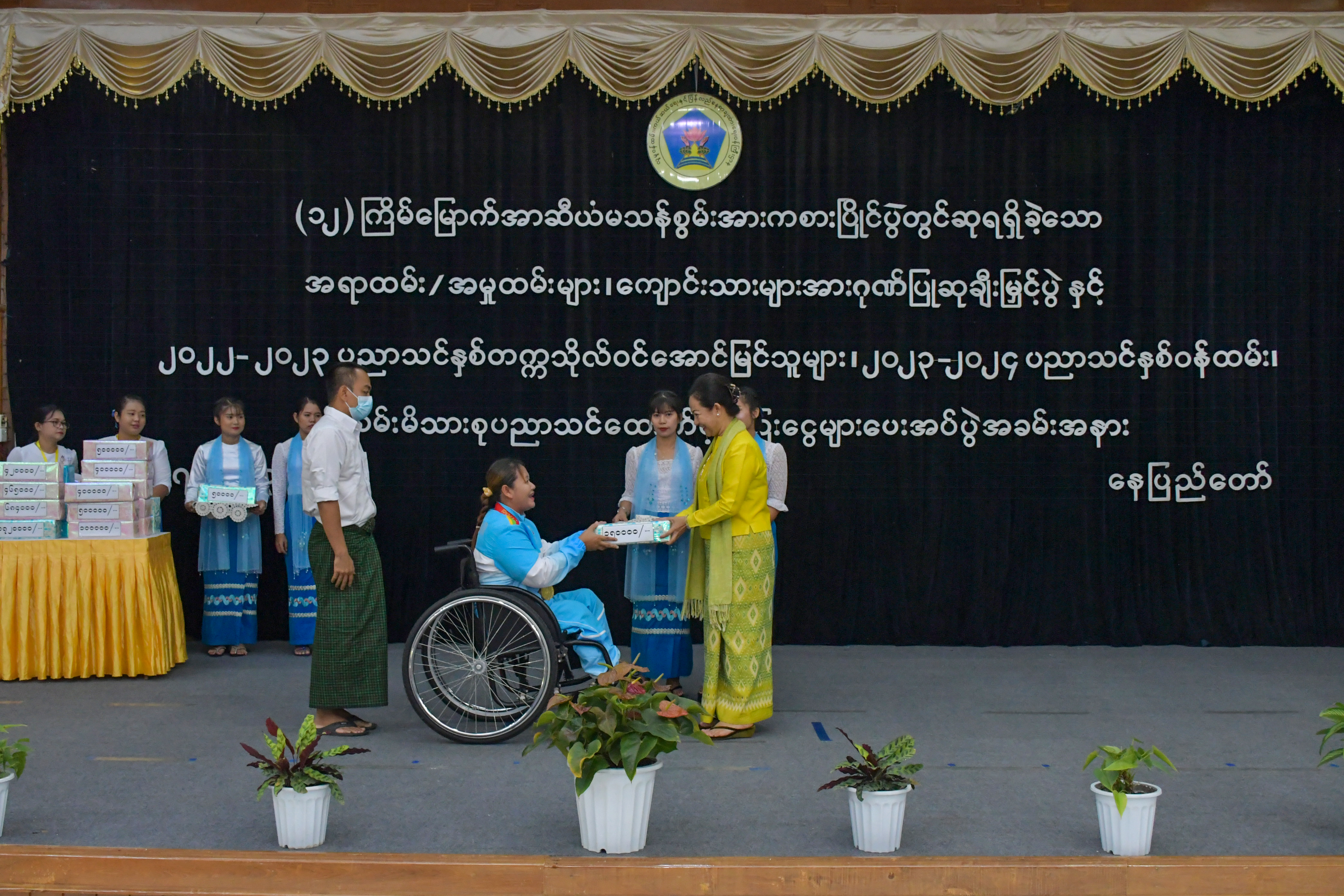 ဆက်လက်၍ ပြည်ထောင်စုဝန်ကြီး၊ အမြဲတမ်းအတွင်းဝန်၊ ညွှန်ကြားရေးမှူးချုပ်များနှင့် ဒုတိယအမြဲတမ်းအတွင်းဝန်က ဝန်ကြီးဌာနရှိ ထူးချွန်မသန်စွမ်းအားကစားသမားများ၊ တက္ကသိုလ် ဝင်စာမေးပွဲ ထူးချွန်အောင်မြင်သူ ဝန်ထမ်းသား/သမီးများနှင့် ယခုပညာသင်နှစ် အတွက် ဝန်ထမ်းမိသားစု စုစုပေါင်း (၁,၅၁၇)ဦးအတွက် ချီးမြှင့်ငွေနှင့် ပညာသင်ထောက်ပံ့ ကြေးငွေ စုစုပေါင်း( ၂၄,၂၃၅,၀၀၀ ကျပ်)ကို ထူးချွန် အားကစားသမားများ၊ ဝန်ထမ်းများနှင့် ဝန်ထမ်း မိသားစုသား/သမီးများထံ ထောက်ပံ့ပေးအပ်ကြသည်။