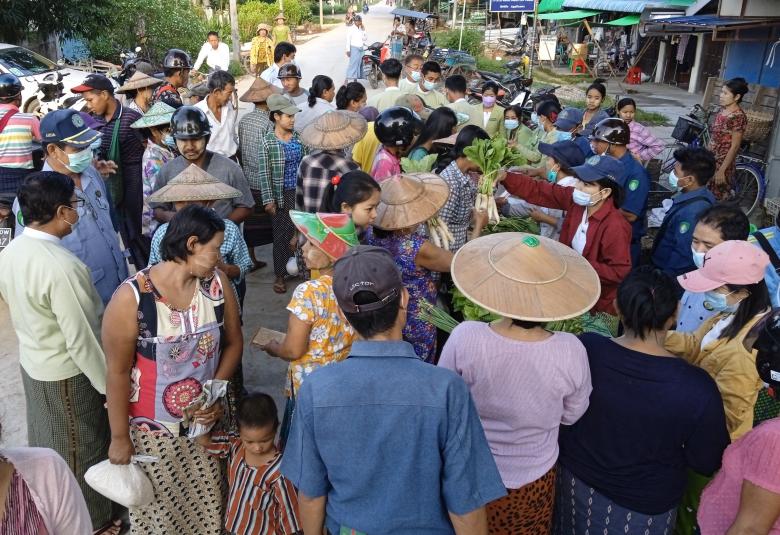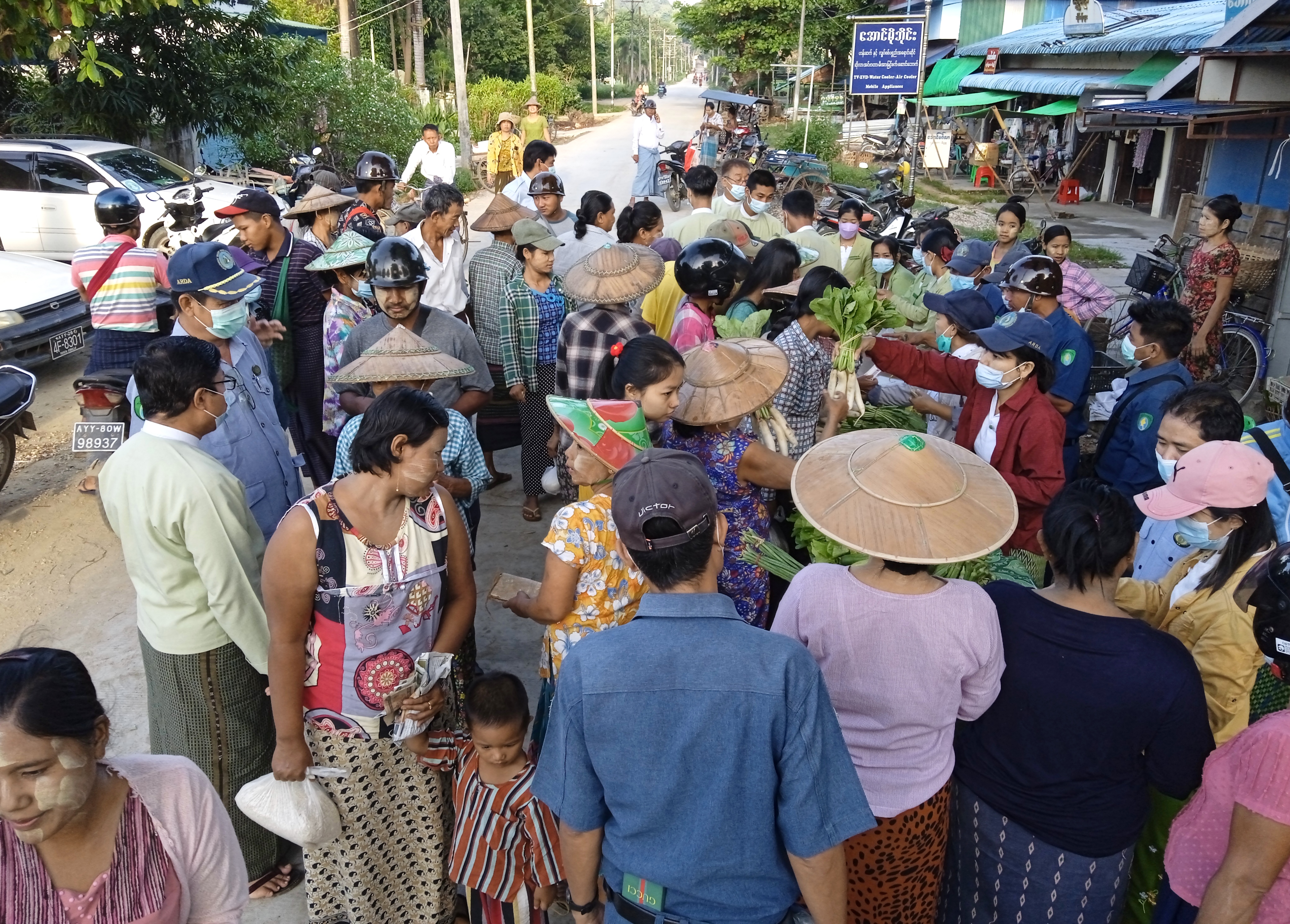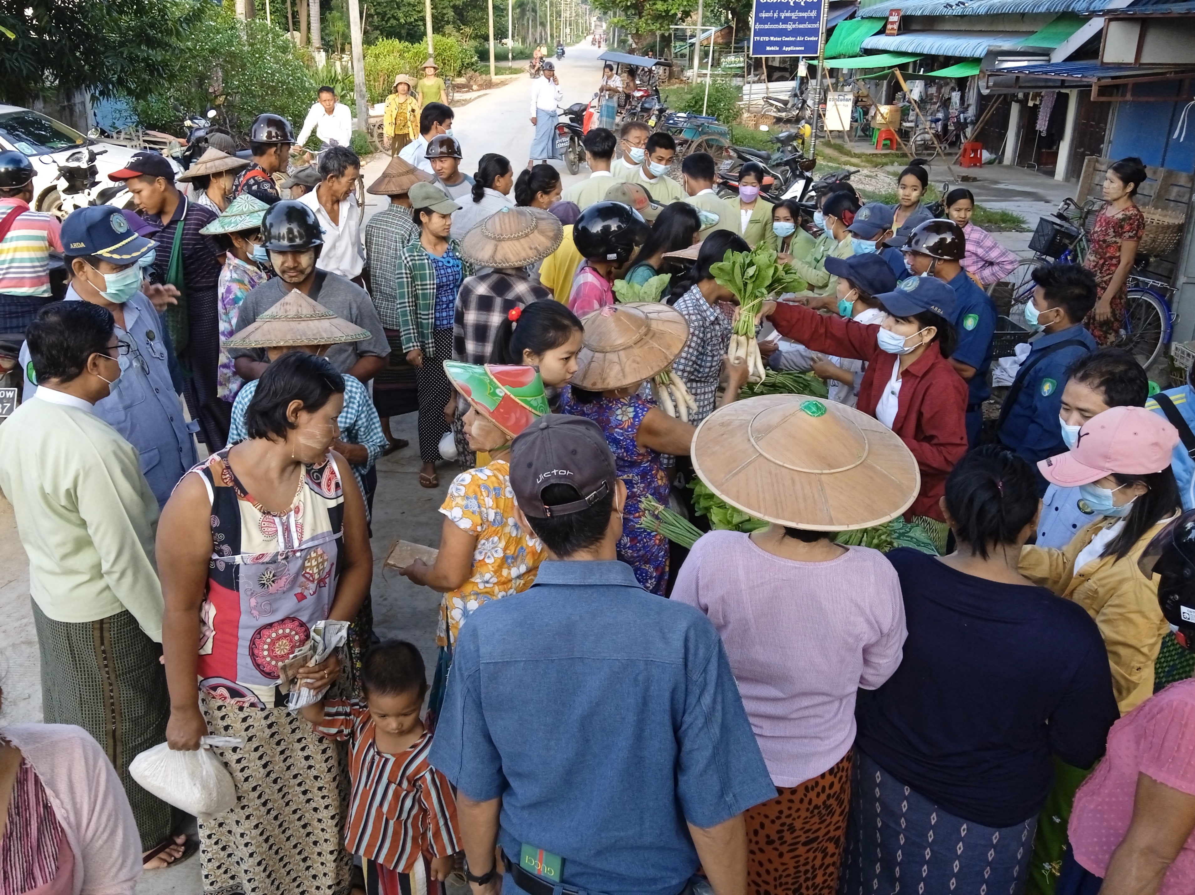 ဧရာဝတီတိုင်းဒေသကြီး၊ မြန်အောင်ခရိုင်၊ အင်္ဂပူမြို့နယ်၊ ထူးကြီးမြို့ဈေး၌ အောက်တိုဘာ ၁၃ ရက် နံနက်က အခြေခံစားသောက်ကုန်များကို သက်သာသောဈေးနှုန်းဖြင့် ပြည်သူများအား ရောင်းချပေးခဲ့သည်။