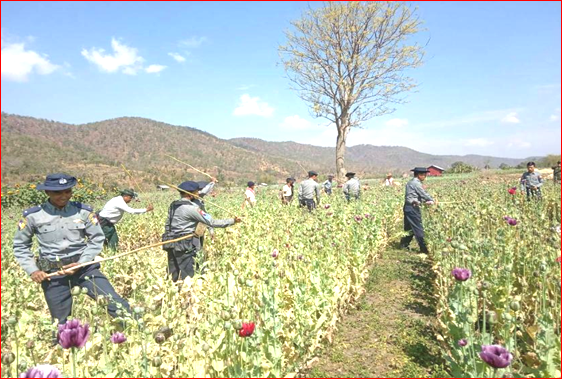 ရှမ်းပြည်နယ်ရဲတပ်ဖွဲ့မှ တပ်ဖွဲ့ဝင်များပါဝင်သော ပူးပေါင်းအဖွဲ့သည် မတ်လ ၃ ရက်နေ့ နံနက် ၉ နာရီ ၁၀ မိနစ်အချိန်မှ နံနက် ၁၁ နာရီအချိန်ထိ တာချီလိတ်မြို့နယ်၊ ဟွေလေကျေးရွာအနီး၌ အမြင့် ၂ ပေခန့်ရှိ သီးပွင့်ဆဲ ဘိန်းခင်း ၁ ဧကခန့်အား ဖျက်ဆီးခဲ့သည်။