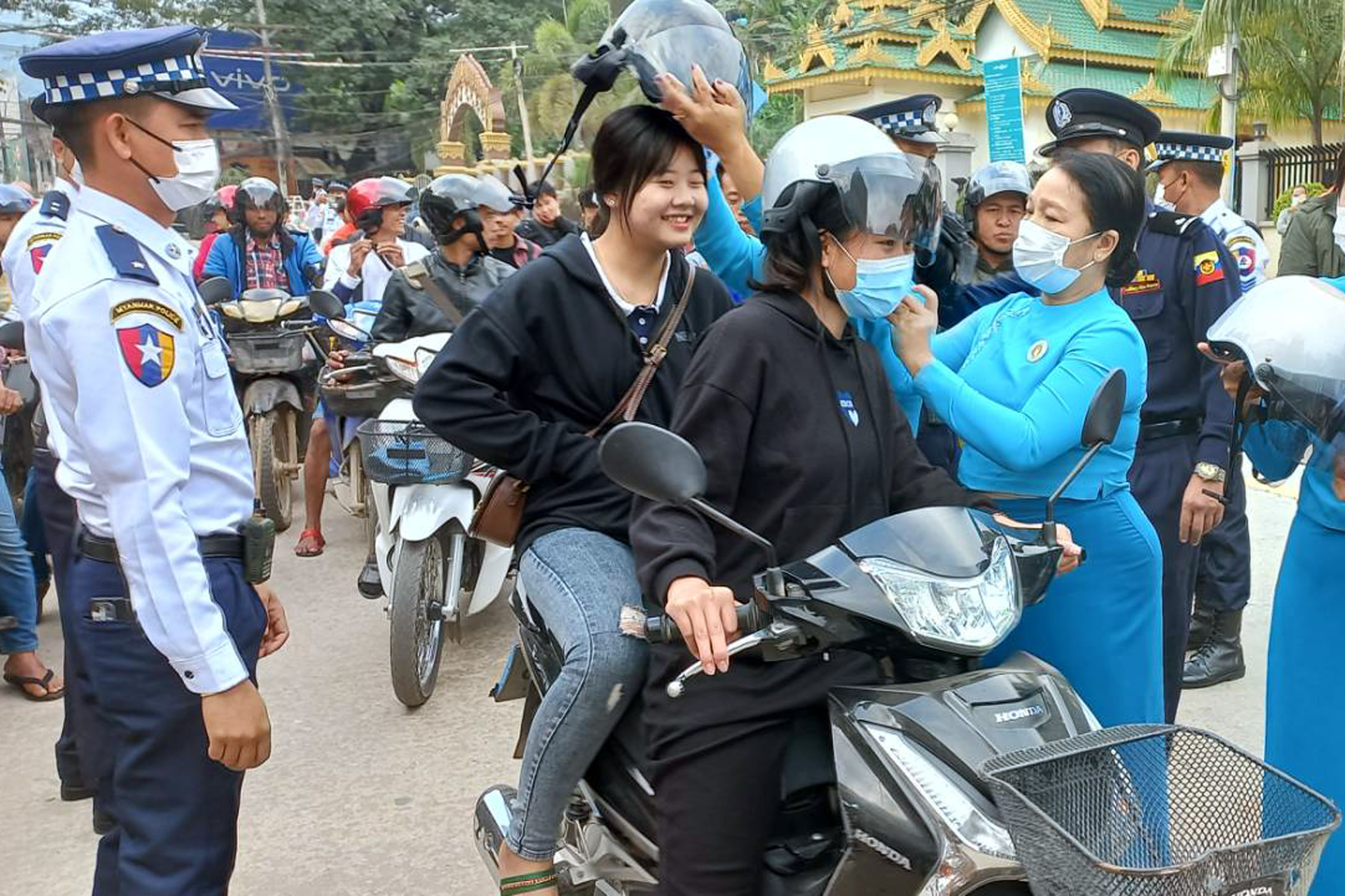 အခမ်းအနားတွင် အမှတ်(၁၂၁) ယာဉ်ထိန်းရဲတပ်ဖွဲ့စု (တာချီလိတ်)မှ ဒုတိယရဲမှူးသိန်းဘိုက ၂၀၁၉ မှ ၂၀၂၂ ခုနှစ်အတွင်း စည်းကမ်းပျက် မော်တော်ဆိုင်ကယ်နှင့် မော်တော်ယာဉ်များအား ဖမ်းဆီးတရားစွဲတင်ပို့ခဲ့မှုနှင့် တရားရုံး ဒဏ်ငွေရရှိမှုများကို ရှင်းလင်းတင်ပြပြီး တာချီလိတ် မြို့ပေါ်ရပ်ကွက်များနှင့် ဗိုလ်ချုပ်လမ်းမကြီး တစ်လျှောက် စက်သံဆူညံစွာ ပါဝါအိတ်ဇောတပ်ဆင်မောင်းနှင်ခဲ့သော မော်တော်ဆိုင်ကယ် ၃၅၂ စီးမှ သိမ်းဆည်းထားရှိခဲ့သော ပါဝါအိတ်ဇောများအား ဗိုလ်ချုပ်လမ်းမပေါ်တွင် လမ်းကြိတ်စက်ဖြင့် ကြိတ်၍ ဖျက်ဆီးခဲ့သည်။ ထို့နောက် ဗိုလ်ချုပ်လမ်းပေါ်တွင် ဖြတ်သန်းသွားလာသည့် မော်တော်ဆိုင်ကယ်များမှ ဆိုင်ကယ်ဦးထုပ် မပါရှိသူများအား ဆိုင်ကယ်ဦးထုပ် အလုံးရေ ၃၀၀ ကို အခမဲ့ဖြန့်ဝေပေးပြီး ယာဉ်စည်းကမ်း လမ်းစည်းကမ်း အသိပညာပေး လက်ကမ်းစာစောင်များ ဖြန့်ဝေကာ အသိပညာပေးပြဘုတ်များ ပြသခဲ့ကြောင်း သိရသည်။