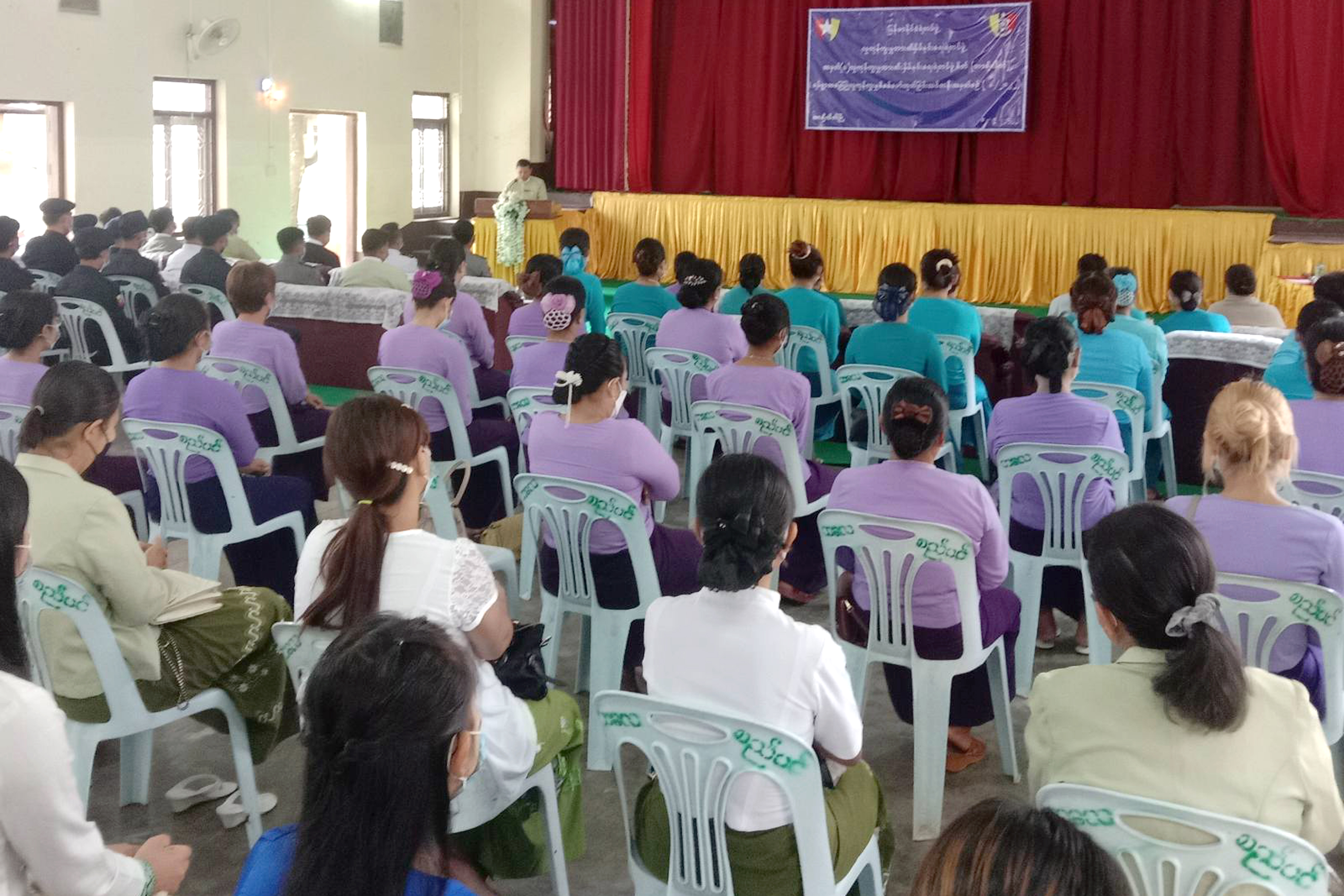 အခမ်းအနားသို့ ခရိုင်လူကုန်ကူးမှု တားဆီးကာကွယ်ရေးအဖွဲ့ အတွင်းရေးမှူး ဒုတိယရဲမှူးကြီး ဇော်လင်းအောင်နှင့် အဖွဲ့ဝင်များ၊ ခရိုင်/မြို့နယ် အမျိုးသမီးရေးရာအဖွဲ့ဝင်များ၊ ခရိုင်/မြို့နယ် မိခင်နှင့် ကလေးစောင့်ရှောက်ရေးအသင်းဝင်များ၊ အရန်မီးသတ်တပ်ဖွဲ့ဝင်များ၊ ရပ်ကွက်အုပ်ချုပ်ရေးမှူးများနှင့် ရပ်ရွာအခြေပြု လူကုန်ကူးမှု စိစစ်ဖော်ထုတ်ရေးအဖွဲ့ဝင်များ တက်ရောက်ခဲ့ကြသည်။