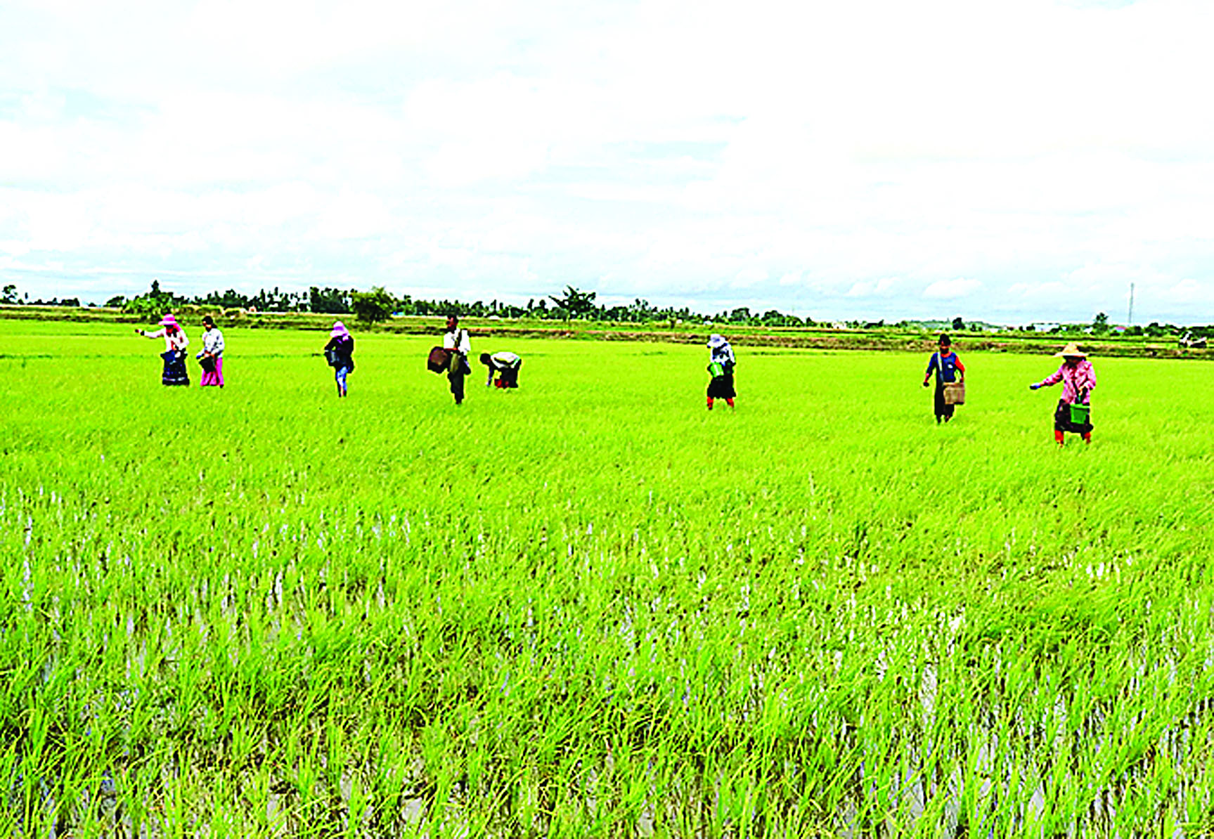 “ဟုတ်ပါတယ်။ ကျွန်မ ပြောမလို့ပါ။ စပါးမျိုးနဲ့ စပါးအသက်ကိုလိုက်ပြီး နွားချေးနဲ့ ပုလဲမြေဩဇာ ရောနှောတဲ့ အချိုးက ကွာခြားပါတယ်။ တကယ်လို့ စပါးအထွက်တိုးမျိုး ဆင်းသွယ်လတ်ကို ပျိုးမယ်ဆိုရင် ပျိုးခင်းမှာ သဘာဝနွားချေးမြေဩဇာ နွားလှည်းနှစ်စီးနဲ့ ကွန်ပေါင်းငါးပြည် ထည့်ရပါမယ်။ ပျိုးသက် ၁ဝ ရက်သားရောက်ရင် ယူရီးယား နှစ်ပြည်နဲ့ နွားချေးခြောက်ပြည် အခုလိုပဲ သုံးအချိုးတစ် ထည့်စပ်ပြီး ကြဲပက်ပေးရပါမယ်။