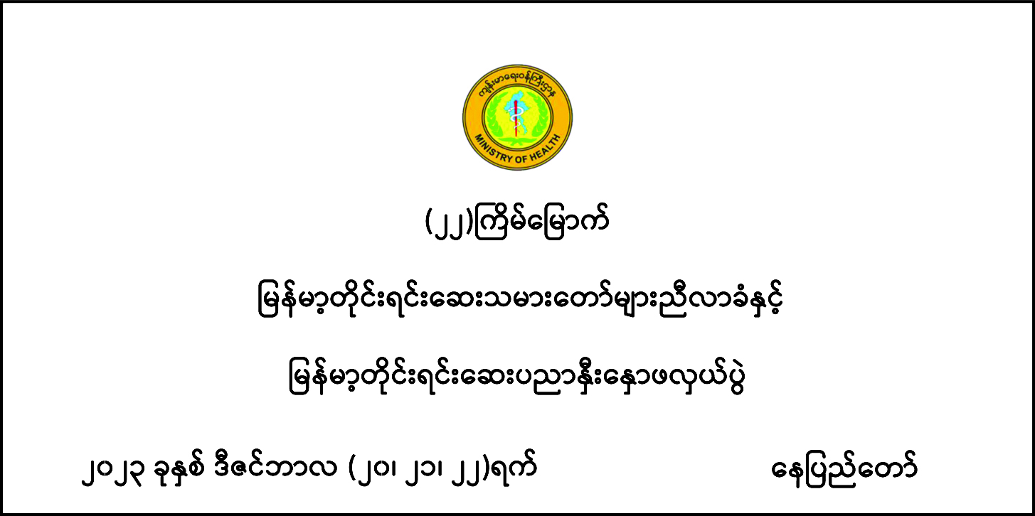 ယခုကျင်းပမည့် (၂၂) ကြိမ်မြောက် မြန်မာ့တိုင်းရင်းဆေးသမားတော်များညီလာခံနှင့် မြန်မာ့တိုင်းရင်းဆေးပညာနှီးနှောဖလှယ်ပွဲကို -