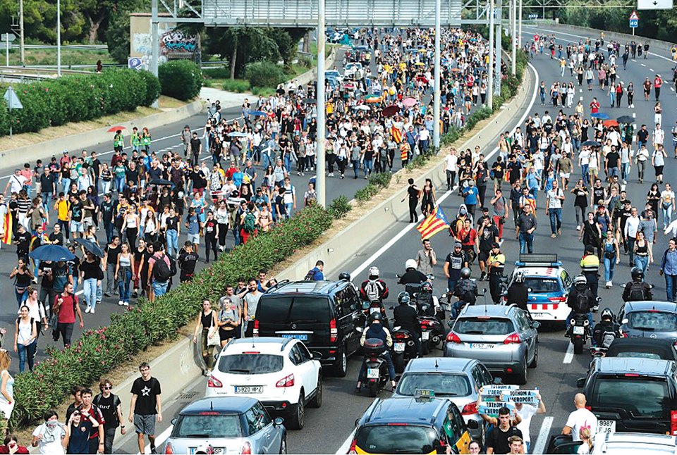 ဆန္ဒပြသူတွေနဲ့ ရဲတွေကြား ရုန်းရင်းဆန်ခတ်ဖြစ်မှု တွေ ပြင်းထန်လာတဲ့အတွက် အဲဒီနေ့က လေကြောင်းခရီး စဉ် ၁၀၀ ခန့်ကို ဖျက်သိမ်းလိုက်ရပါတယ်။ ဘာစီလိုနာမြို့ အပါအဝင်အခြားသောမြို့တွေမှာ ရဲတွေနဲ့ဆန္ဒပြသူတွေ ကြား ပဋိပက္ခတွေ ပေါ်ပေါက်ခဲ့ပါတယ်။ ဆန္ဒပြသူတွေဟာ လမ်းပေါ်မှာ မီးရှို့ပြီး အရံအတားတွေ ပြုလုပ်ခဲ့ကြပါတယ်။ ရဲတွေကတော့ လူစုခွဲဖို့အတွက် မျက်ရည်ယိုဗုံးတွေ အသုံး ပြုခဲ့ပါတယ်။ စပိန်အစိုးရကတော့ ဆန္ဒပြသူတွေရဲ့ လုပ်ရပ် ဟာ အကြမ်းဖက်တဲ့လုပ်ရပ်ဖြစ်ပြီး ကတ်တလန်ဒေသရဲ့ တရားဥပဒေစိုးမိုးရေးကို ထိခိုက်စေတယ်လို့ ပြောခဲ့ပါတယ်။ ပြီးခဲ့တဲ့ စက်တင်ဘာ ၁၁ ရက်က ကတ်တလန်ဒေသမှာ အမျိုးသားနေ့ကျင်းပရာမှာတော့ လွတ်လပ်ရေးလိုလားသူ ခြောက်သိန်းခန့် ဆန္ဒပြခဲ့ကြပါတယ်။ ယခင်နှစ်တုန်းက တော့ လူပေါင်းတစ်သန်းနီးပါးခန့် ဆန္ဒပြခဲ့ကြတာမို့ အရေအတွက် နည်းပါးသွားတယ်လို့ ပြောရမှာပါ။