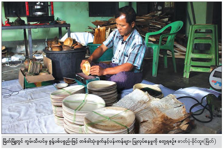 လက်ရှိ မြန်မာနိုင်ငံတွင် ပလတ်စတစ်အရည်စုပ် ပိုက်လေးများ နေရာတွင် ဝါးငယ်လေးများဖြင့် အစားထိုးအသုံးပြုနေသလို အုန်းပင်ထွက် ပစ္စည်းလေးများဖြင့် ပန်းကန်မျိုးစုံကို အစားထိုး ထုတ်လုပ်၍ ပလတ်စတစ်ဖော့ဘူးများ၊ ပလတ်စတစ်ပုဂံပြားများ၊ ပလတ်စတစ်ထမင်းစားဘူးများ နေရာတွင် အစားထိုးဝင်ရောက်ရန် ကြိုးစားနေသလို၊ စွန့်ပစ်တစ်ခါသုံး ပစ္စည်းများဖြစ်သည့် ကော်ဖီထုပ်ခွံများကို အသုံးပြု၍ လှပသည့်ဒီဇိုင်းများဖြင့် လက်ဆွဲအိတ်၊ လက်ဆွဲခြင်း၊ စားပွဲခင်း၊ ကုလားထိုင်ခင်း၊ ဖျာများပြုလုပ်၍ ဈေးနှုန်းချိုသာစွာဖြင့် ရောင်းချနေသည်ကို ဟိုမှာဒီမှာ တွေ့နေရသည်။ ပို၍ ထူးခြားသည်မှာ မည်သည့်အပိုပစ္စည်းမျှ မပါဘဲ ရောင်စုံကော်ဖီထုပ်မျိုးစုံကိုသာ အသုံးပြု၍ ခြင်္သေ့ပုံ၊ ဥဒေါင်းပုံ၊ သဘာဝရှုခင်းပုံများကို ပုံဖော်၍ပန်းချီကားကဲ့သို့ ပြုလုပ်ရောင်းချ နေသည်ကိုလည်း တွေ့မြင်ရပါသည်။