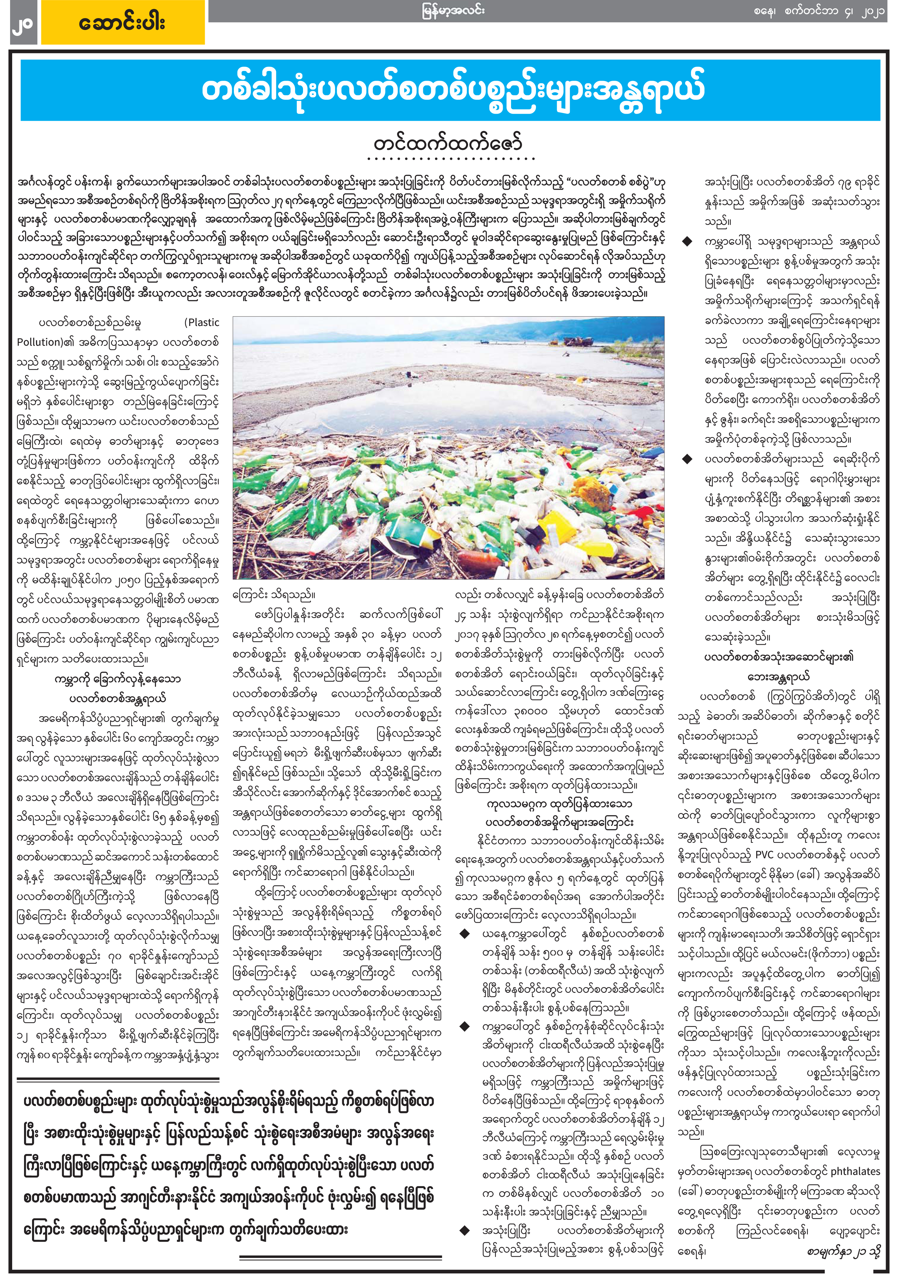 တစ်ခါသုံးပလတ်စတစ်ပစ္စည်းများအန္တရာယ်