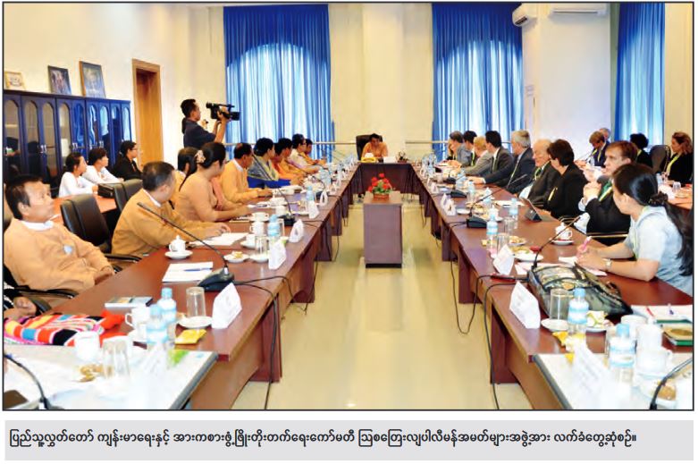 အားကစားမှာလည်း ဒီအတိုင်းပါပဲ ပူးပေါင်းဆောင်ရွက်လျက်ရှိပါတယ်။ ကျွန်တော်တို့ နိုင်ငံဟာ တစ်ချိန်တုန်းက အရှေ့တောင် အာရှတင်မက အာရှတစ်လွှားမှာပါ မြန်မာ့အားကစားက အင်မတန် အောင်မြင်ခဲ့တယ်။ အထူးသဖြင့် အမျိုးသားဘောလုံးအသင်းက အောင်မြင်ခဲ့တယ်။ အခုနောက်ပိုင်းမှာ အကြောင်းအမျိုးမျိုးကြောင့် အားကစားအဆင့်အတန်းက ကျသွားတယ်။ အဲဒါကို ပြန်လည်မြှင့်တင်နိုင်ဖို့ အားကစားဥပဒေတွေ လိုအပ်တဲ့အချက်တွေအကုန်လုံးကို ကျွန်တော်တို့ ကော်မတီက ကိုယ်စွမ်းဉာဏ်စွမ်းရှိသရွေ့ ဆောင်ရွက်နေပါတယ်။ အားကစားလောက ပြန်လည်တိုးတက်ဖို့အတွက် အဓိက လိုအပ်နေတာ အမျိုးသား အားကစားဥပဒေကို ပြုစုရေးဆွဲနေတာ ဖြစ်ပါတယ်။ အကြောင်းအမျိုးမျိုးကြောင့် အခက်အခဲတော့ ရှိနေပါတယ်။ ၂၀၂၀ ပြည့်နှစ်အတွင်း ဒုတိယအကြိမ် လွှတ်တော်သက်တမ်း မကုန်ခင်မှာ အမျိုးသား အားကစားဥပဒေတစ်ခု ဖြစ်ထွန်းလာအောင် ဆက်လက်ကြိုးပမ်း ဆောင်ရွက်သွားမှာ ဖြစ်ပါတယ်။