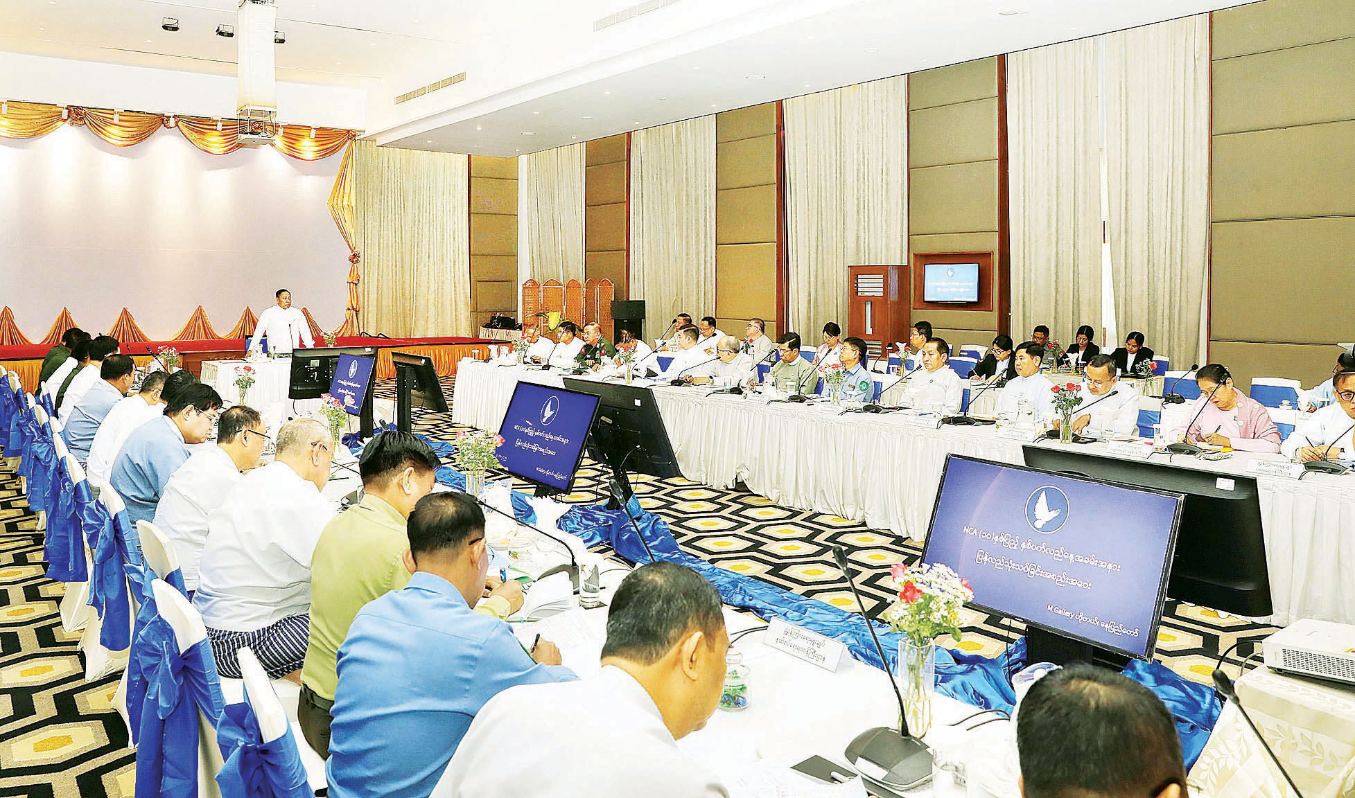 တစ်နိုင်ငံလုံးပစ်ခတ်တိုက်ခိုက်မှုရပ်စဲရေးသဘောတူစာချုပ် (NCA) (၁၀)နှစ်ပြည့် နှစ်ပတ်လည်နေ့အခမ်းအနား ပြန်လည်သုံးသပ်ခြင်းအစည်းအဝေးကို ယနေ့ နံနက်ပိုင်းတွင် နေပြည်တော်ရှိ MGallery ဟိုတယ်၌ ကျင်းပသည်။