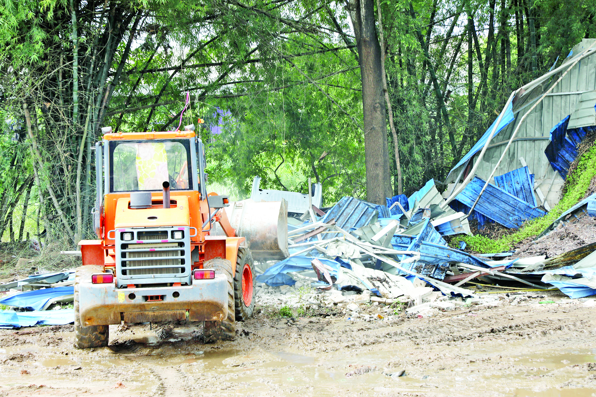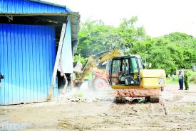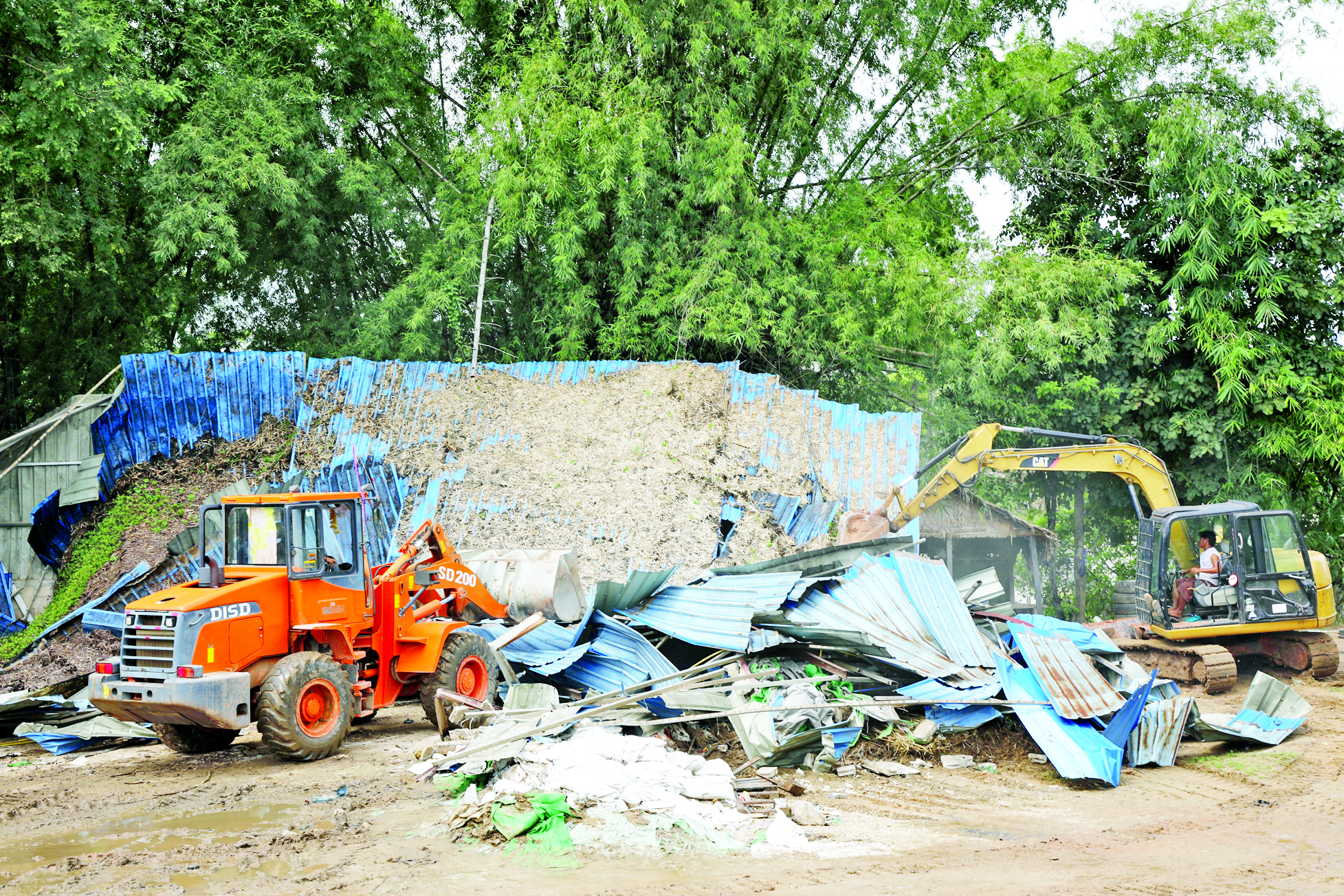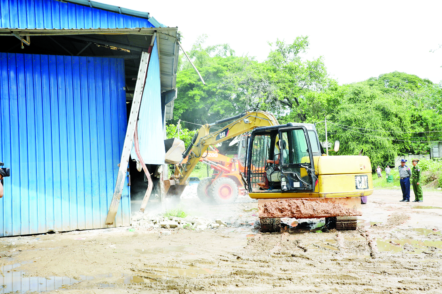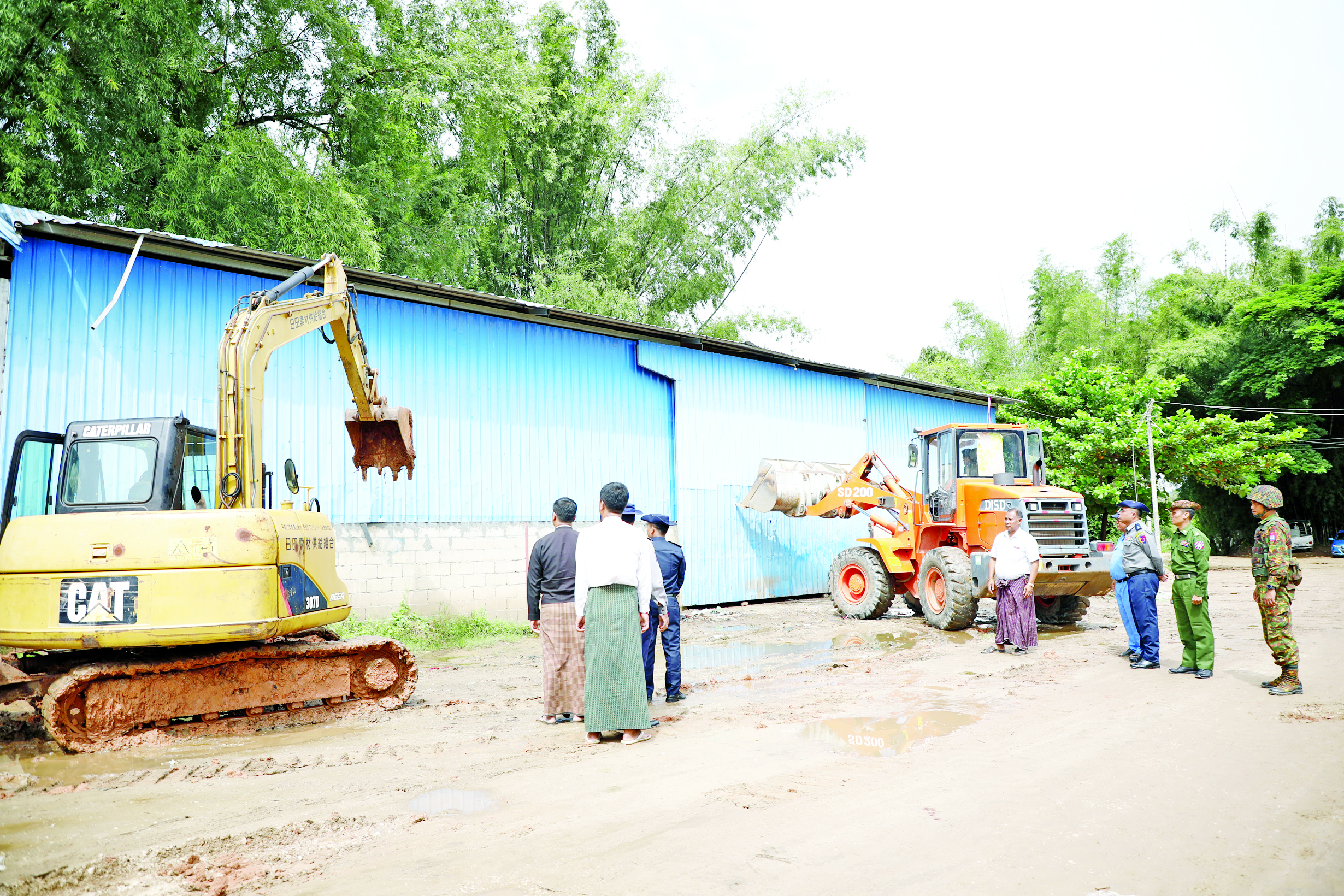 ထိုသို့ ဖျက်ဆီးရှင်းလင်းခြင်းလုပ်ငန်းများ ဆောင်ရွက်ရာတွင် လုံခြုံရေးအဖွဲ့နှင့် ဖယ်ရှားရှင်းလင်းရေး အဖွဲ့ဝင်များသည် ယနေ့နံနက်ပိုင်းတွင် စက်၊ ယာဉ်၊ ယန္တရားများနှင့်အတူ မြဝတီမြို့ အမှတ်(၅)ရပ်ကွက်ရှိ ၃၅ ဂိတ် ဒေသအခေါ် အောင်ပါဝါဂိတ်-၂ ကို သွားရောက်စစ်ဆေးပြီး အလျားပေ ၁၂၀၊ အနံပေ ၆၀၊ အမြင့် ၂၅ ပေရှိ သံဖရိန်၊ အုတ်တက်၊ သွပ်မိုးသွပ်ကာ ပစ္စည်းသိုလှောင်ရုံအား ဖယ်ရှားရှင်းလင်းခြင်းလုပ်ငန်းကို ဆောင်ရွက်ကြသည်။