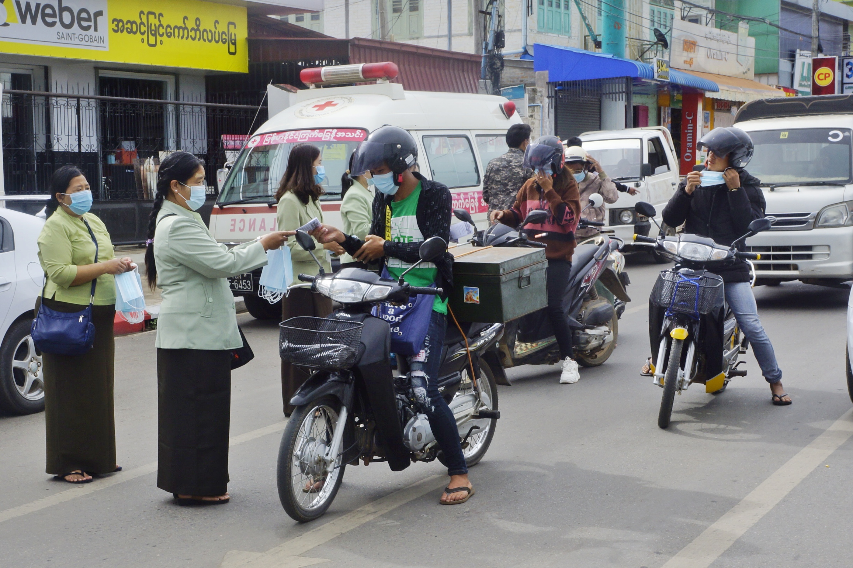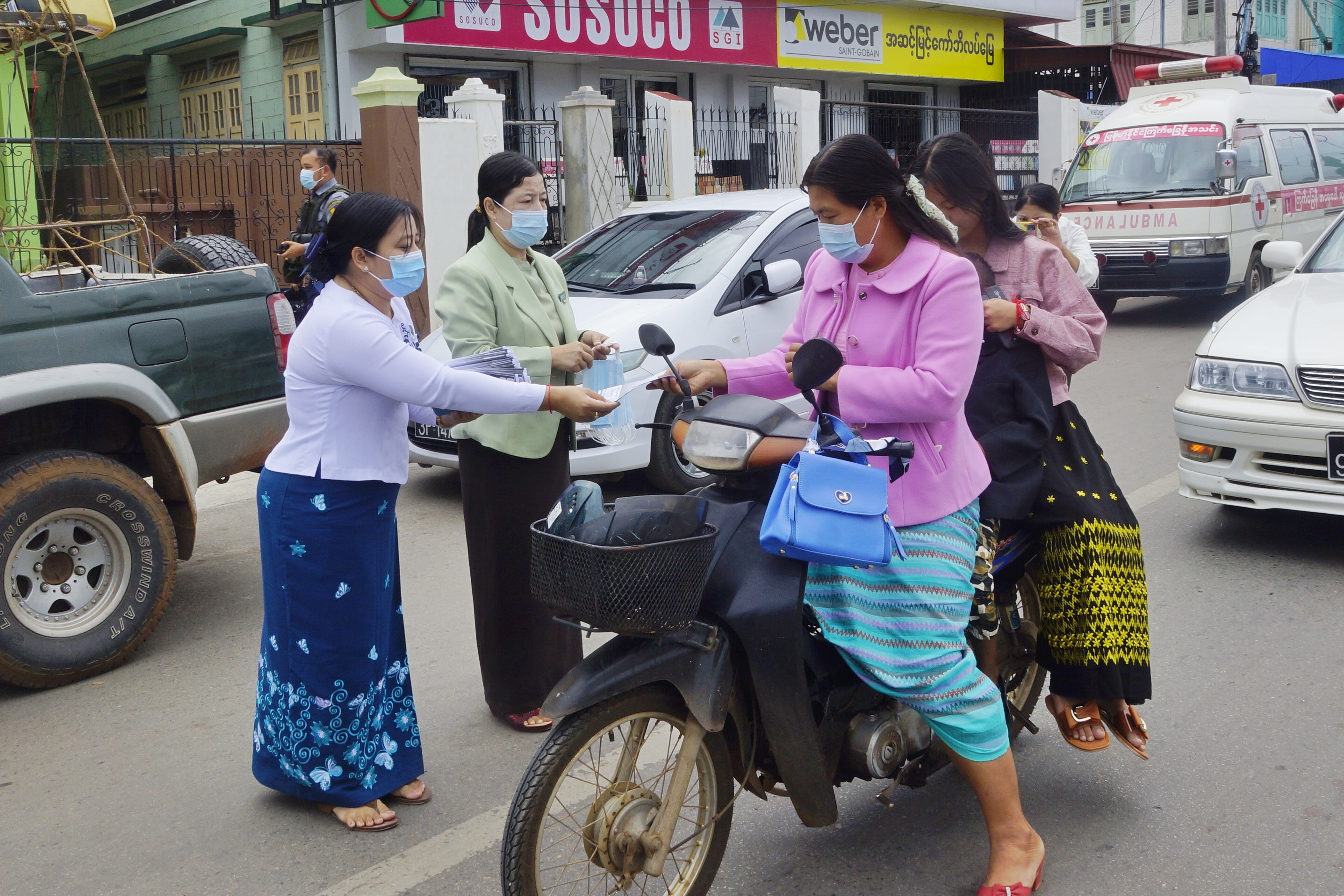 ထိုသို့ဆောင်ရွက်ရာတွင် ဌာနဆိုင်ရာဝန်ထမ်းများက လမ်းသွား၊ လမ်းလာ ပြည်သူများအား နှာခေါင်းစည်း Mask ၁၀၀၀ ကို အခမဲ့ဖြန့်ဝေပေးပြီး စနစ်တကျတပ်ဆင်စေခြင်း၊ ကိုဗစ်-၁၉ ရောဂါ ကာကွယ်ရေးဆိုင်ရာ အသိပညာပေး လက်ကမ်းစာစောင် ၅၀၀ ကို အခမဲ့ဖြန့်ဝေပေးခြင်းနှင့် ကိုဗစ်-၁၉ ရောဂါ ကာကွယ် ထိန်းချုပ်ရေး အကြောင်းအရာများကို အသံချဲ့စက်ဖြင့် အသိပညာပေးနှိုးဆော်ကြခြင်းဖြစ်သည်။ အဆိုပါ ကိုဗစ်-၁၉ ရောဂါကူးစက်ပြန့်ပွားမှုလျော့ကျရေး အသိပညာပေးလုပ်ငန်းများကို ပိုမိုထိရောက်မှု ရှိစေရန်အတွက် လူစည်ကားရာနေရာများတွင် ရက်သတ္တပတ်လျှင် နှစ်ကြိမ် ဆောင်ရွက်သွားမည် ဖြစ်ကြောင်း သိရသည်။