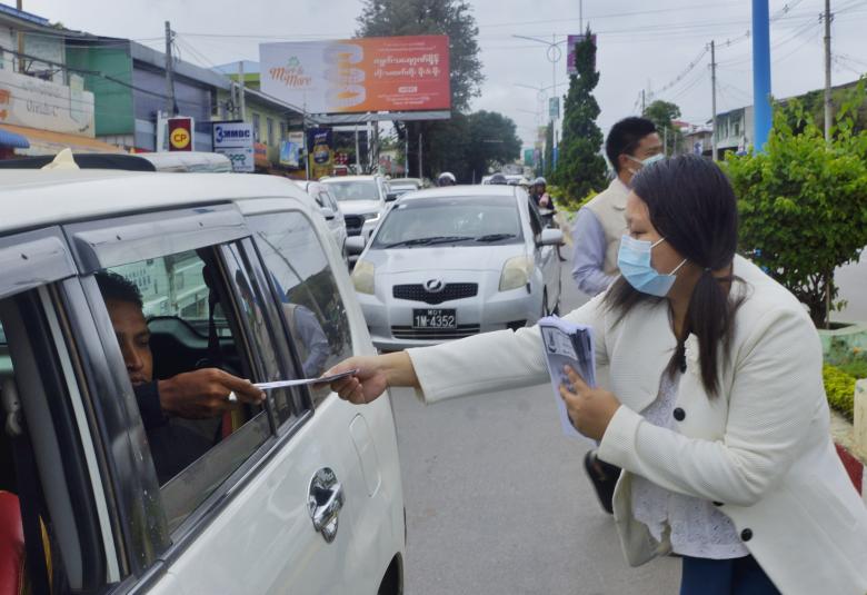ရှမ်းပြည်နယ်(တောင်ပိုင်း)၊ တောင်ကြီးမြို့တွင် ကိုဗစ်-၁၉ ရောဂါ ကူးစက်ပြန့်ပွားမှု လျော့နည်း ပပျောက်စေရန် မြို့နယ်အထွေထွေ အုပ်ချုပ်ရေးဦးစီးဌာနမှဦးဆောင်၍ ဌာနဆိုင်ရာများက ကိုဗစ်-၁၉ ရောဂါ ကူးစက်ပြန့်ပွားမှုလျော့ကျရေး အသိပညာပေးလုပ်ငန်းများကို မြင်းရုပ်မီးပွိုင့်နှင့် အနောက် မြို့ပတ်လမ်း၊ စဝ်စံထွန်းဈေးရှေ့တို့တွင် စက်တင်ဘာ ၉ ရက် နံနက်ပိုင်းက ပူးပေါင်းဆောင်ရွက်ခဲ့ကြသည်။