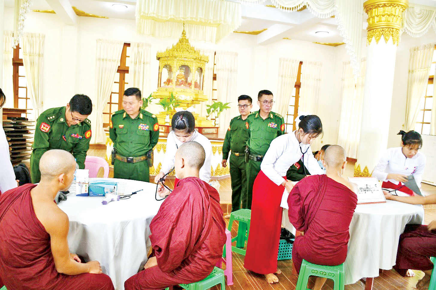 ထိုသို့ ဆောင်ရွက်ပေးရာတွင် ဆေးကုသရေးအဖွဲ့က သံဃာတော် ၄၀၄ ပါး၊ ဒေသခံတိုင်းရင်းသား ပြည်သူ ၂၂ ဦးတို့အား သွားနှင့်ခံတွင်းရောဂါ၊ မျက်စိရောဂါ၊ ကလေးရောဂါ၊ နား၊ နှာခေါင်း၊ လည်ချောင်း ရောဂါ၊ သွေးတိုးရောဂါ၊ အရိုးအကြောရောဂါ၊ အရေပြားဆိုင်ရာ ရောဂါ၊ အထွေထွေရောဂါတို့နှင့် ပတ်သက်၍ လိုအပ်သည့် ကျန်းမာရေး စစ်ဆေးကုသပေးခြင်းများ ဆောင်ရွက်ပေးသည်။