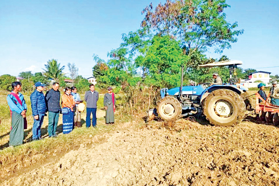 ရှမ်းပြည်နယ်(တောင်ပိုင်း) တောင်ကြီးမြို့နယ်၌ ချယ်ရီမြေစိုက်ပျိုးရေးနှင့် အထွေထွေလုပ်ငန်း သမဝါယမအသင်းလီမိတက်နှင့် သိန်းဓန ထွန်းလယ်ယာနှင့် အထွေထွေစီးပွားရေးလုပ်ငန်း သမဝါယမအသင်းတို့မှ ဆောင်းနေကြာစိုက်ပျိုးရန် ပြင်ဆင်နေမှုအခြေအနေများကို ဒီဇင်ဘာ ၁၃ ရက် နံနက် ၈ နာရီက တာဝန်ရှိသူများက ကွင်းဆင်းကြည့်ရှုစစ်ဆေးသည်။