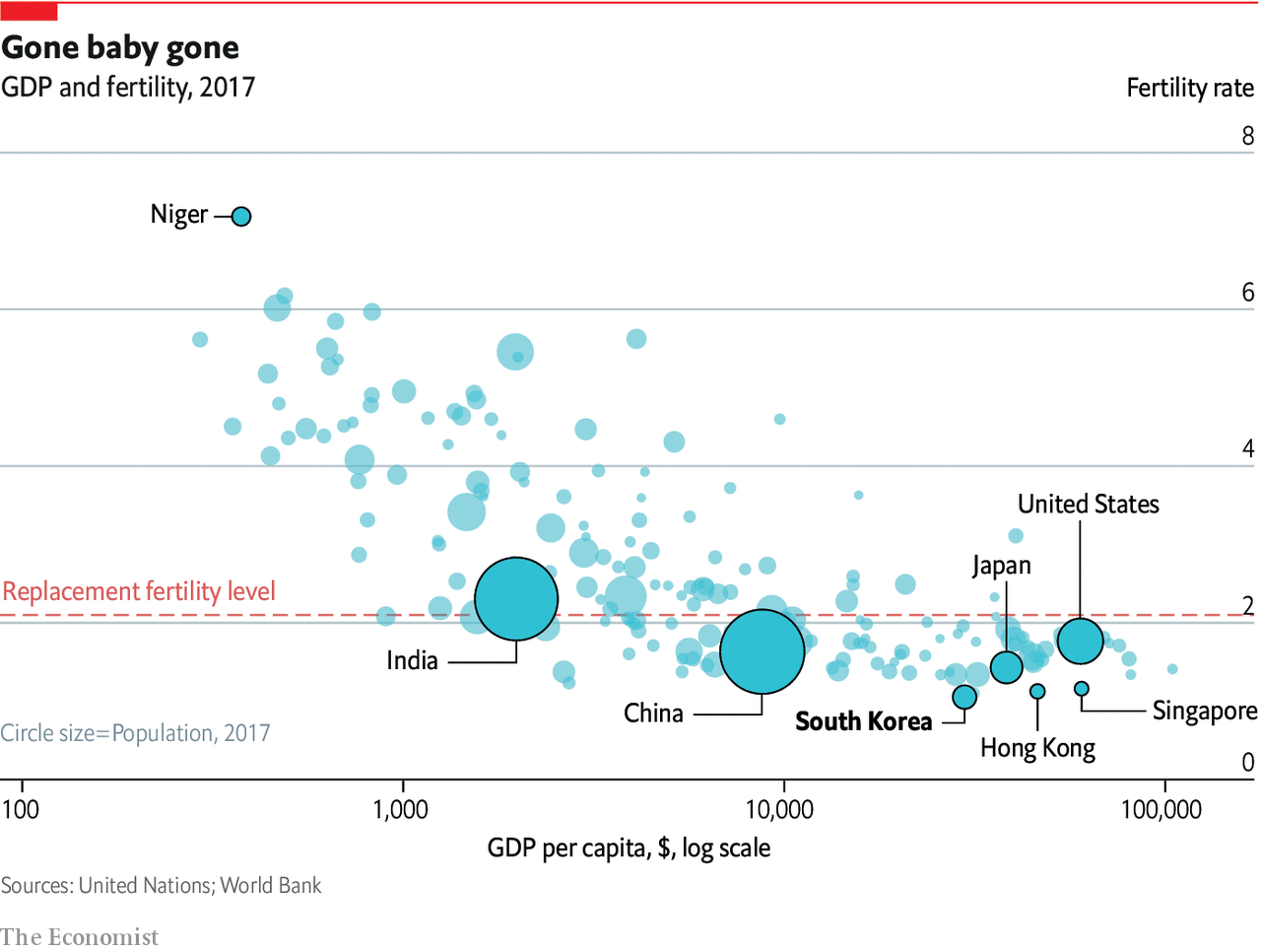 စီးပွားရေးပူးပေါင်းဆောင်ရွက်မှုနှင့် ဖွံ့ဖြိုးတိုးတက်ရေးအဖွဲ့၏ နောက်ဆုံးစာရင်းဇယားများအရ အခြားနိုင်ငံများနှင့် နှိုင်းယှဉ်ပါက တောင်ကိုရီးယား၏ မွေးဖွားနှုန်းသည် အဖွဲ့ဝင်များနိုင်ငံများထဲတွင် အနိမ့်ဆုံးနိုင်ငံဖြစ်နေသည်။