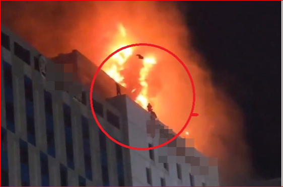 အဆိုပါ Grand Palace ဟိုတယ်၏ပင်မအဆောက်အဦနှင့် ဆက်သွယ်ထားသော ၁၈ ထပ်ရှိ ယာဉ်ရပ်နားစခန်းတွင် ည ၉ နာရီ ၁ မိနစ်ဝန်းကျင်က  မီးစတင်လောင်ကျွမ်းခဲ့ခြင်း ဖြစ်သည်။