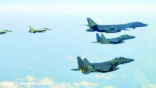 လက်နက်အပြည့်အစုံတပ်ဆင်ထားသော အမေရိကန် ဘီ - ၁ ဘီ ဗုံးကြဲလေယာဉ်များသည် ဂူအမ်း အခြေစိုက်စခန်းမှ ပျံသန်းထွက်ခွာပြီး ၂ နာရီမပြည့်မီ ကိုရီးယားကျွန်းဆွယ်သို့ ရောက်ရှိလာခဲ့ ကြောင်း တောင်ကိုရီးယားမီဒီယာတွင် ဖော်ပြထားသည်။