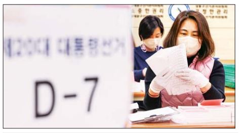 တောင်ကိုရီးယားသမ္မတ ရွေးကောက်ပွဲမစမီ တစ်ပတ်အလိုတွင် အာဏာရပါတီနှင့် အကြီးဆုံး အတိုက်အခံပါတီမှ ကိုယ်စားလှယ်လောင်းများသည် ပြည်သူ့ စစ်တမ်းတွင် တစ်စတစ်စအကြိတ်အနယ် ယှဉ်ပြိုင်လျက်ရှိသည်။