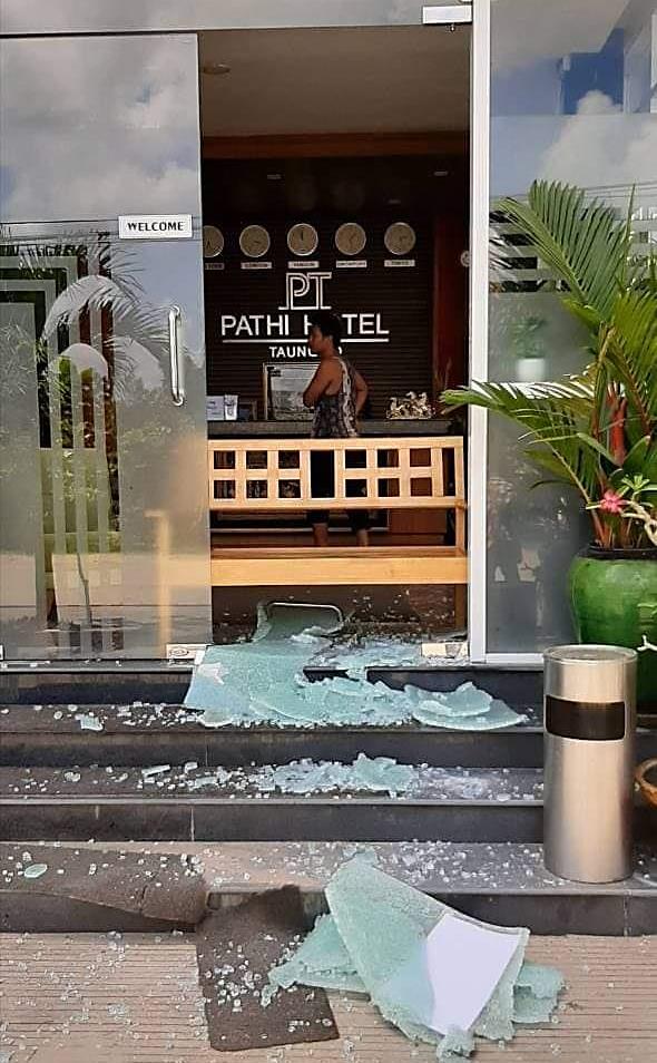 တောင်ငူမြို့၊ အနောက်ဘက် ကျုံးပတ်လမ်း၊ အမှတ် ၂ ရပ်ကွက်ရှိ ပသိဟိုတယ်၏ အဝင်တံခါးမကြီး မှန်တံခါးများရိုက်ခွဲပြီး လူတစ်ဦး ဓားကိုင်ရမ်းကားမှု ပြုလုပ်နေကြောင်း အောက်တိုဘာ ၃ ရက် မွန်းလွဲ ၁၂ နာရီ ၃၅ မိနစ်က သတင်းရရှိသဖြင့် တောင်ငူအမှတ် ၂ နယ်မြေရဲစခန်းမှ နယ်ထိန်းခေါင်းဆောင် ဒုရဲအုပ် နေဝင်းထွန်း ဦးစီးအဖွဲ့က သွားရောက်ရှင်းလင်း ဆောင်ရွက်ခဲ့ရကြောင်း သိရှိရသည်။