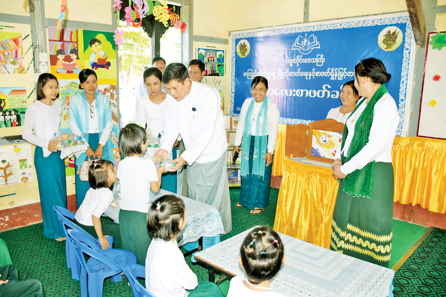 ထို့နောက် ပဲခူးတိုင်းဒေသကြီး လူမှုရေးရာဝန်ကြီးက တောင်ငူ မြို့နယ်အတွင်းရှိ ကျောင်းစာကြည့် တိုက်များအတွက် စာအုပ်များကို ပေးအပ်လှူဒါန်းရာ ခရိုင်ပညာရေးမှူး ဒေါက်တာနော်ဥမ္မာထွန်း က လက်ခံရယူသည်။