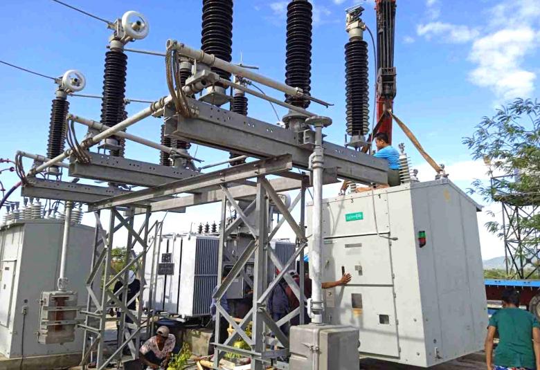 မန္တလေးတိုင်းဒေသကြီး၊ မြင်းခြံခရိုင်၊ တောင်သာမြို့နယ်ရှိ နတ်စောင့်ကျေးရွာ၊ နတ်စောင့်ဓာတ်အားခွဲရုံ 33/KV 5 MVA Transformer ပျက်စီးမှုအတွက် ပြန်လည်ပြုပြင်ခြင်းကို ဩဂုတ် ၁၄ ရက်မှစတင်၍ မန္တလေးတိုင်း လျှပ်စစ်ဓာတ်အားပေးရေး ကော်ပိုရေးရှင်း လမ်းညွှန်မှုဖြင့် တောင်သာမြို့နယ် လျှပ်စစ်မန်နေဂျာနှင့် ဝန်ထမ်းများက ဆောင်ရွက်ခဲ့ကြသည်။